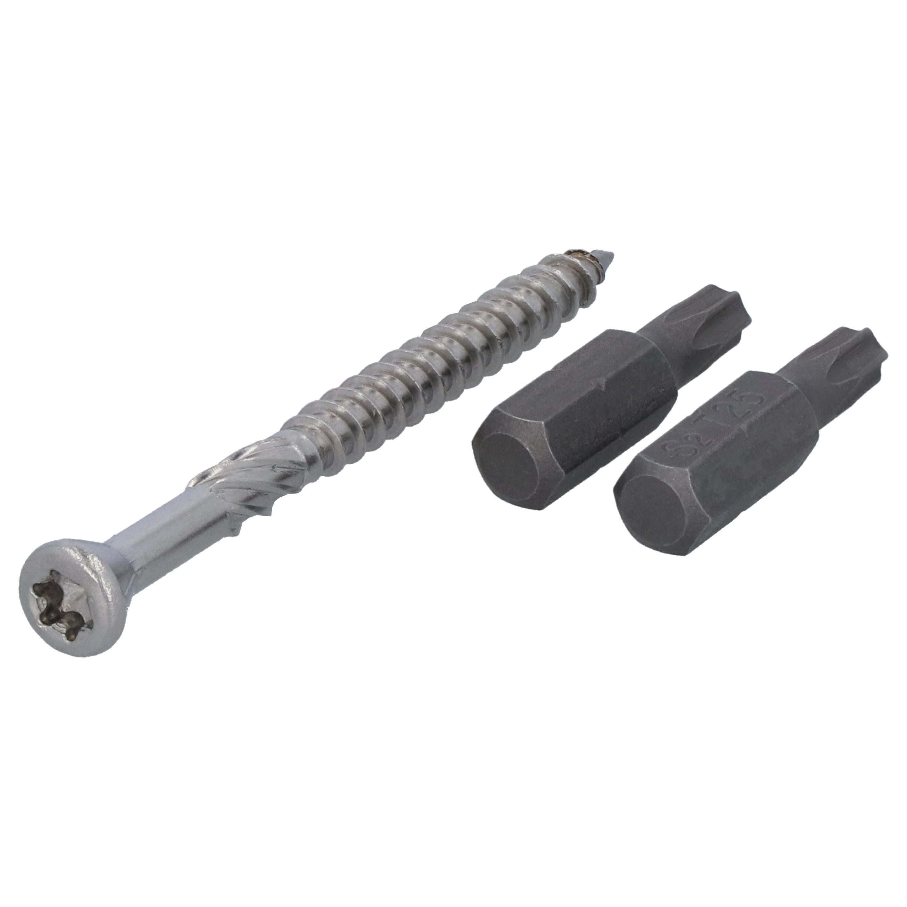 Tête de vis réduite : finition esthétique et discrète. Crans sous tête : Finition de vissage optimale. Boule de fraisage : Vissage facilité. Pointe anti-fendage : Évite l'éclatement du bois. Nous recommandons toujours de pré-percer le bois pour obtenir une finition propre. L'acier inoxydable A2 offre une très haute protection contre la corrosion, il est peu résistant aux acides, très résistant aux intempéries.