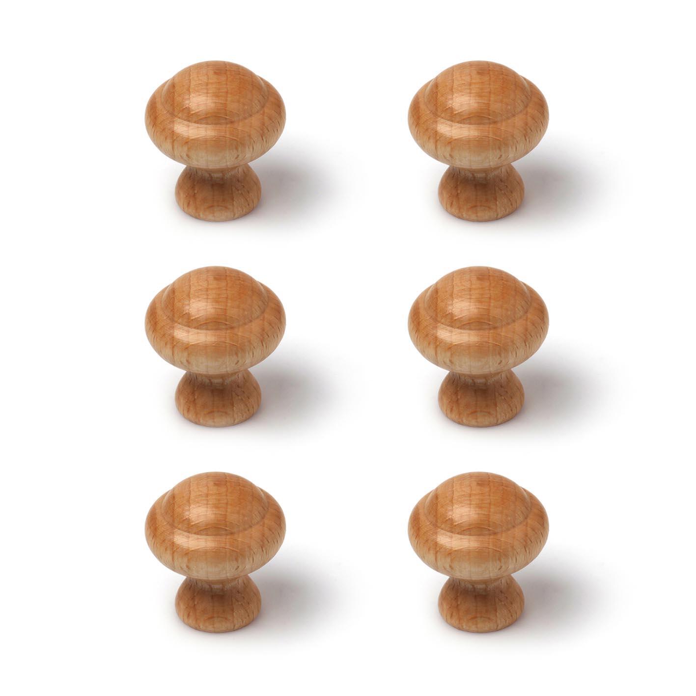 Bouton en bois Ø29mm, en pin finition laquée hêtre transparent. Facile à installer, comprend des vis métriques M4 25mm. Dimensions : Longueur 29 x Largeur 29 x Profondeur 33mm. Contient 6 unités.