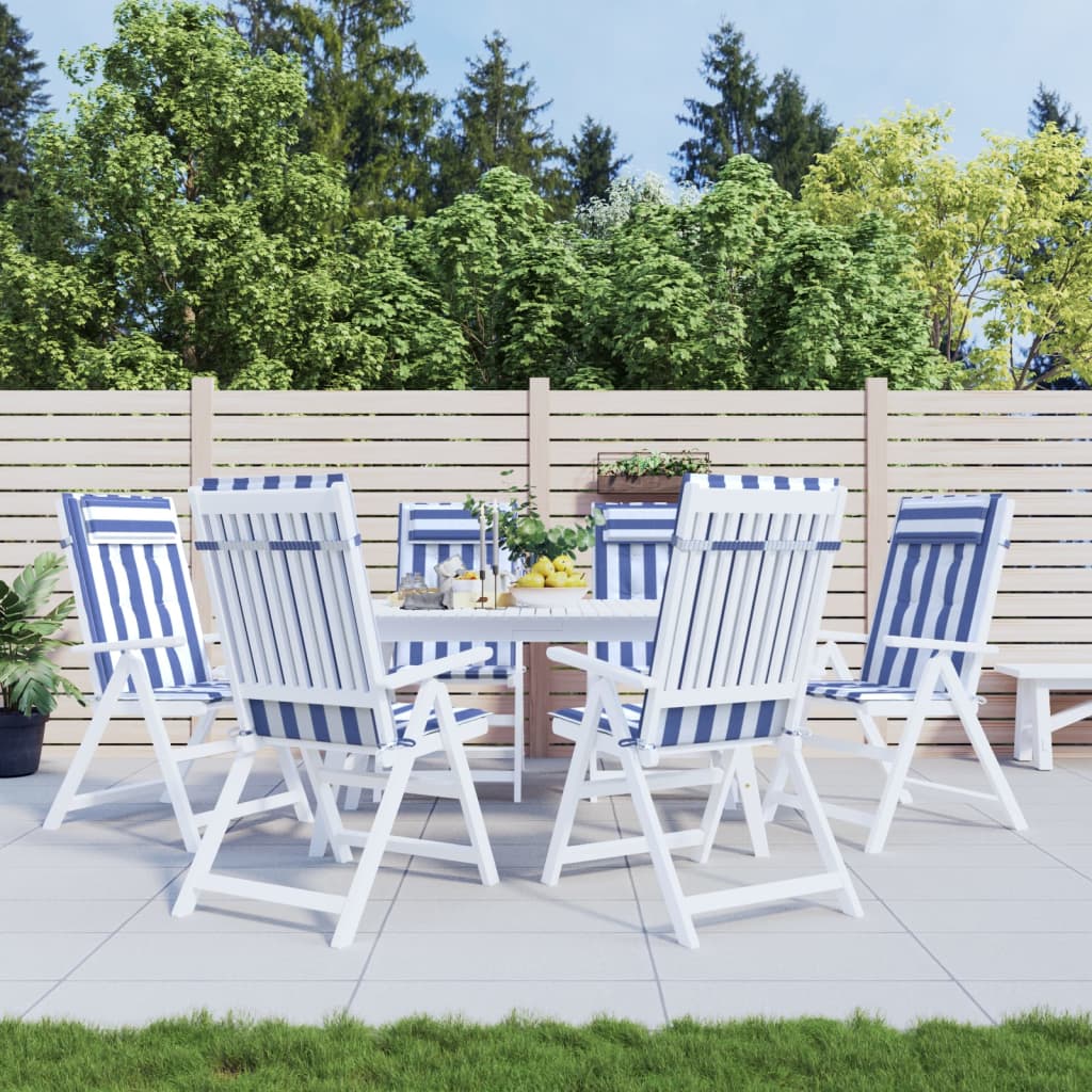 6 pcs Coussin d'extérieur | Coussins de chaise à dossier haut rayures bleu/blanc CFW450535