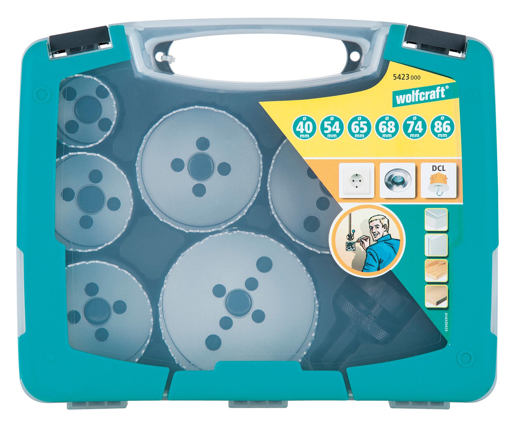 Ce jeu de 7 pièces est idéal pour la préparation d'installations électriques et pour le perçage dans le bois tendre et semi-dur, les panneaux d'isolation, les panneaux de cloison sèche, le plastique ou le métal. Il contient 6 lames de scie cloche BIM d'un Ø de 40, 54, 65, 68, 74 et 86 mm, un axe pilote avec filetage 5/8“ et un foret centreur (Ø 6 mm) en acier rapide HSS. Vous réalisez ainsi des perçages précis avec une profondeur de coupe de 40 mm. Le corps en alliage spécial avec denture HSS permet une longue durée de vie et un fonctionnement silencieux. La queue 6 pans (Ø 11 mm) permet de fixer les lames de scie cloche rapidement sur le porte-embout de votre perceuse ou de votre visseuse sans fil. Le jeu est fourni dans une boîte en plastique bi-matière de haute qualité dans laquelle vous pouvez transporter les pièces en sécurité et les ranger de façon ordonnée. Les lames de scie cloche sont contrôlées par le TÜV - Vous optez donc pour des produits sûrs de qualité.