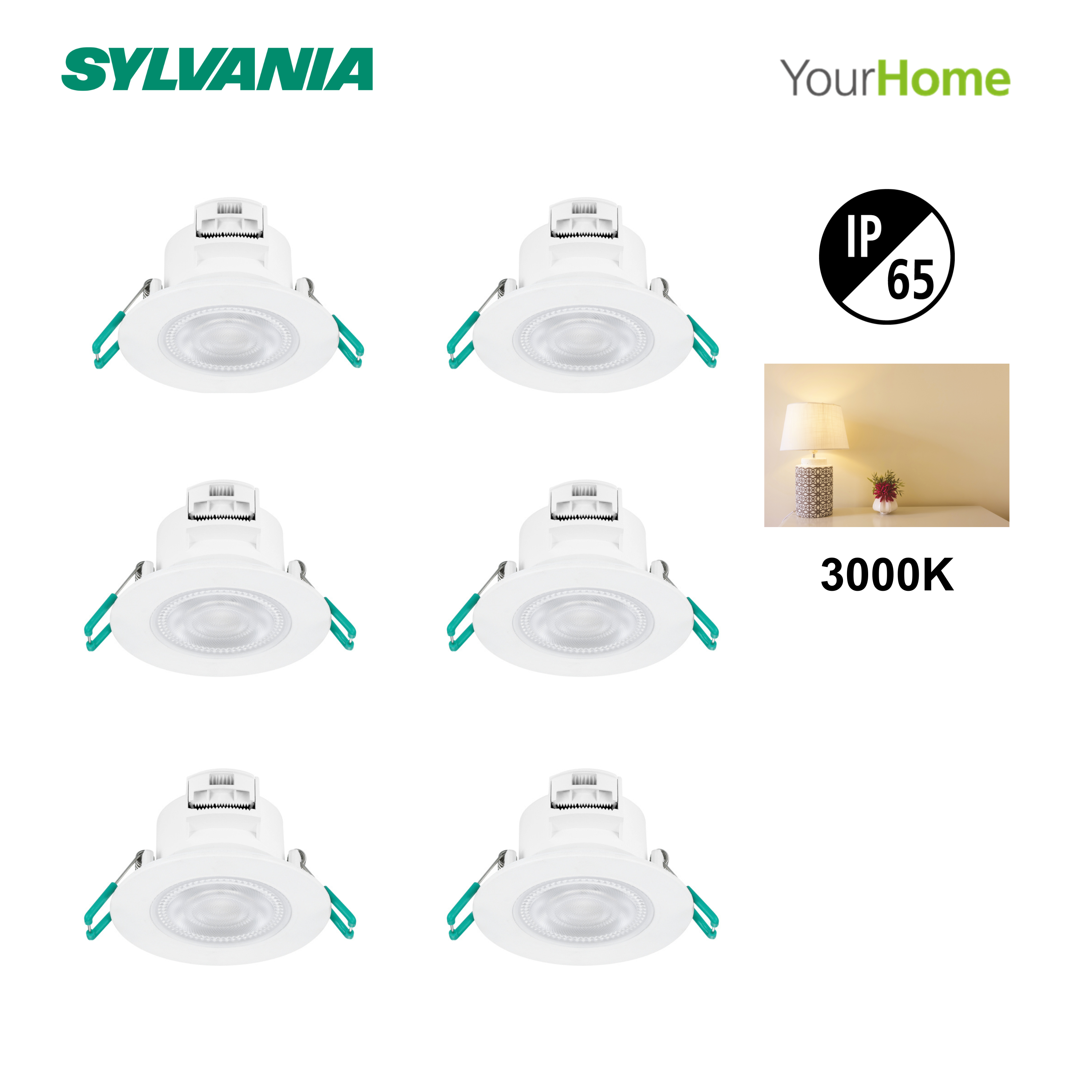 6 spots LED encastrés salle de bain Sylspot IP65, blanc chaud, blanc Sylvania