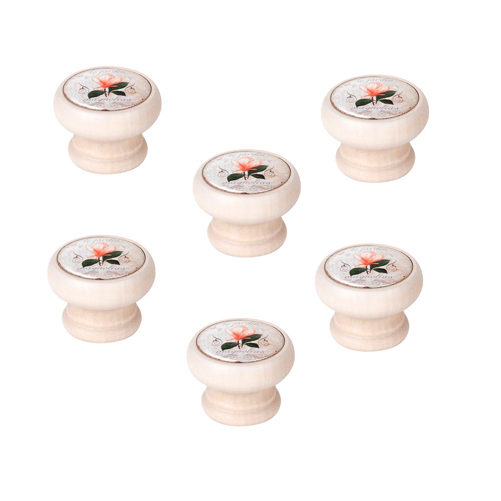 6 Un. bouton poignées de meuble Vintage Retro bois blanc décapé fleur orange - diamètre 40MM