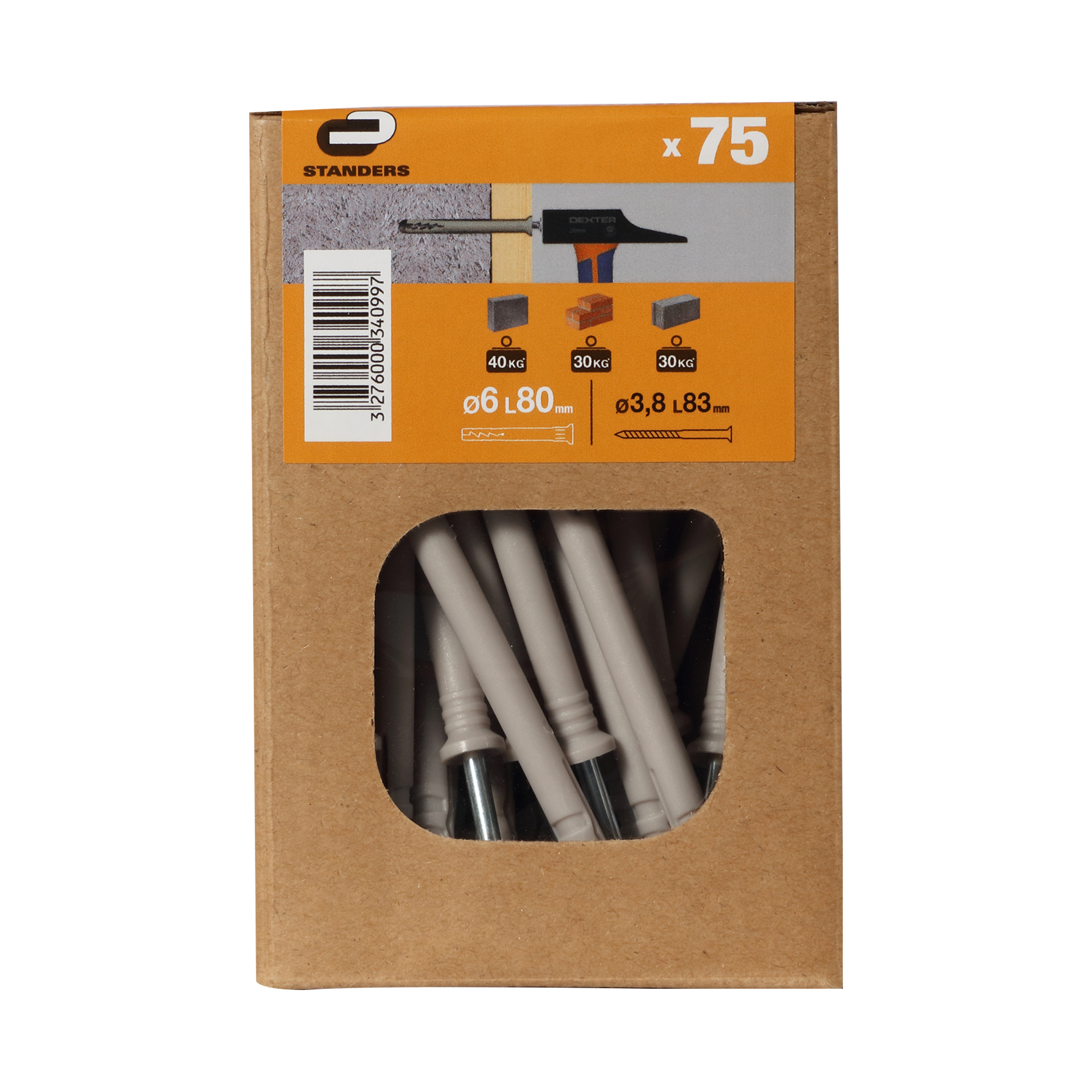 75 chevilles à frapper (brique, béton, parpaing) STANDERS, Diam. 6 x L.80 mm