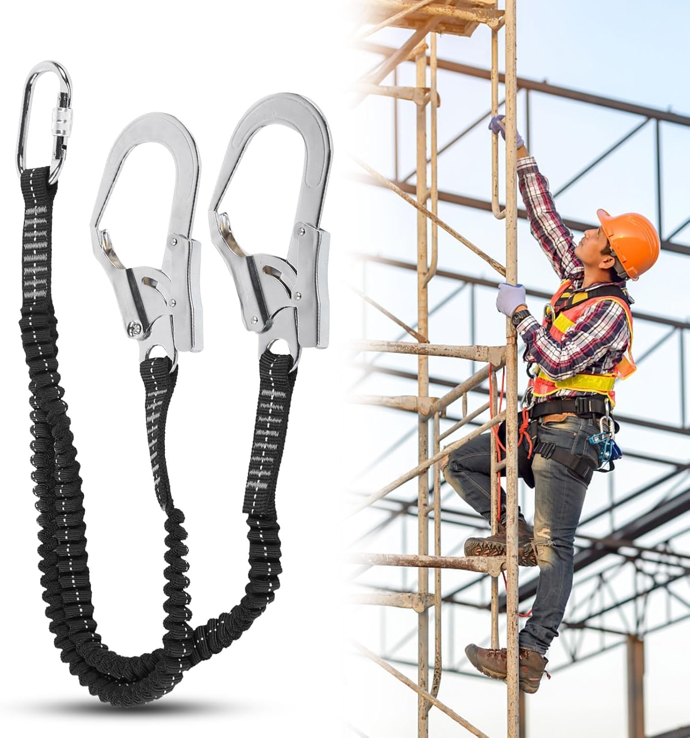 - ✔【Ensemble de Via Ferrata Anti-chute】La lanière antichute est facile à utiliser, solide et durable, peut être fermée hermétiquement et ne s'ouvre pas facilement une fois fermée pour éviter les chutes accidentelles de haute hauteur, ce qui la rend pratique et sûre à utiliser.