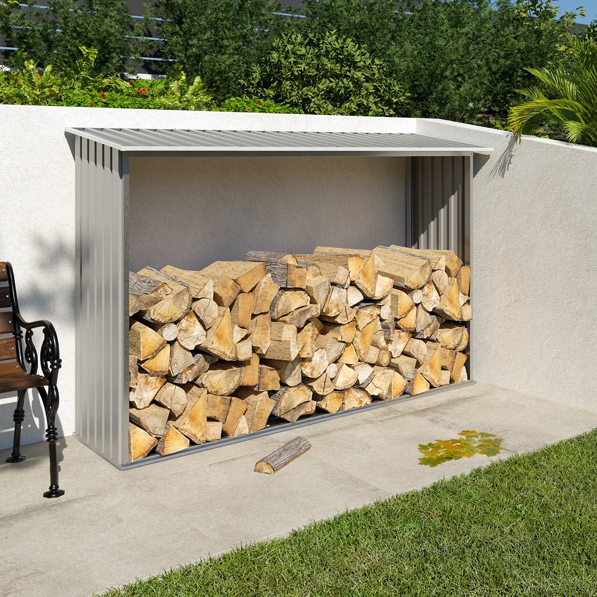 Abri à Bûches en Métal Gris Châtaigne - Capacité de 2 à 3 stères