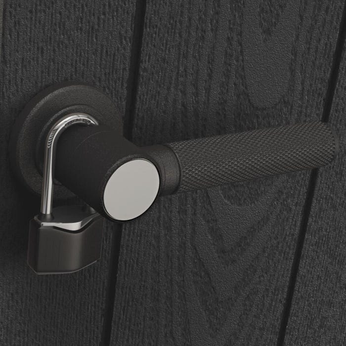 Bonjour, le cadenas visible sur la photo n’est pas inclus. Il est présenté à titre illustratif uniquement. Vous pouvez utiliser un cadenas standard pour verrouiller votre abri de jardin. Cordialement