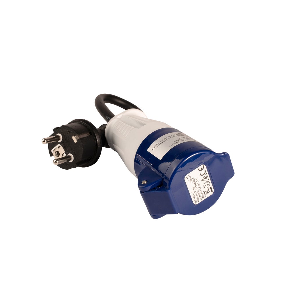 Adaptateur de camping, prise femelle CEE17, prise française mâle, IP44, section de câble 1.5mm2, 16 ampères - Tibelec