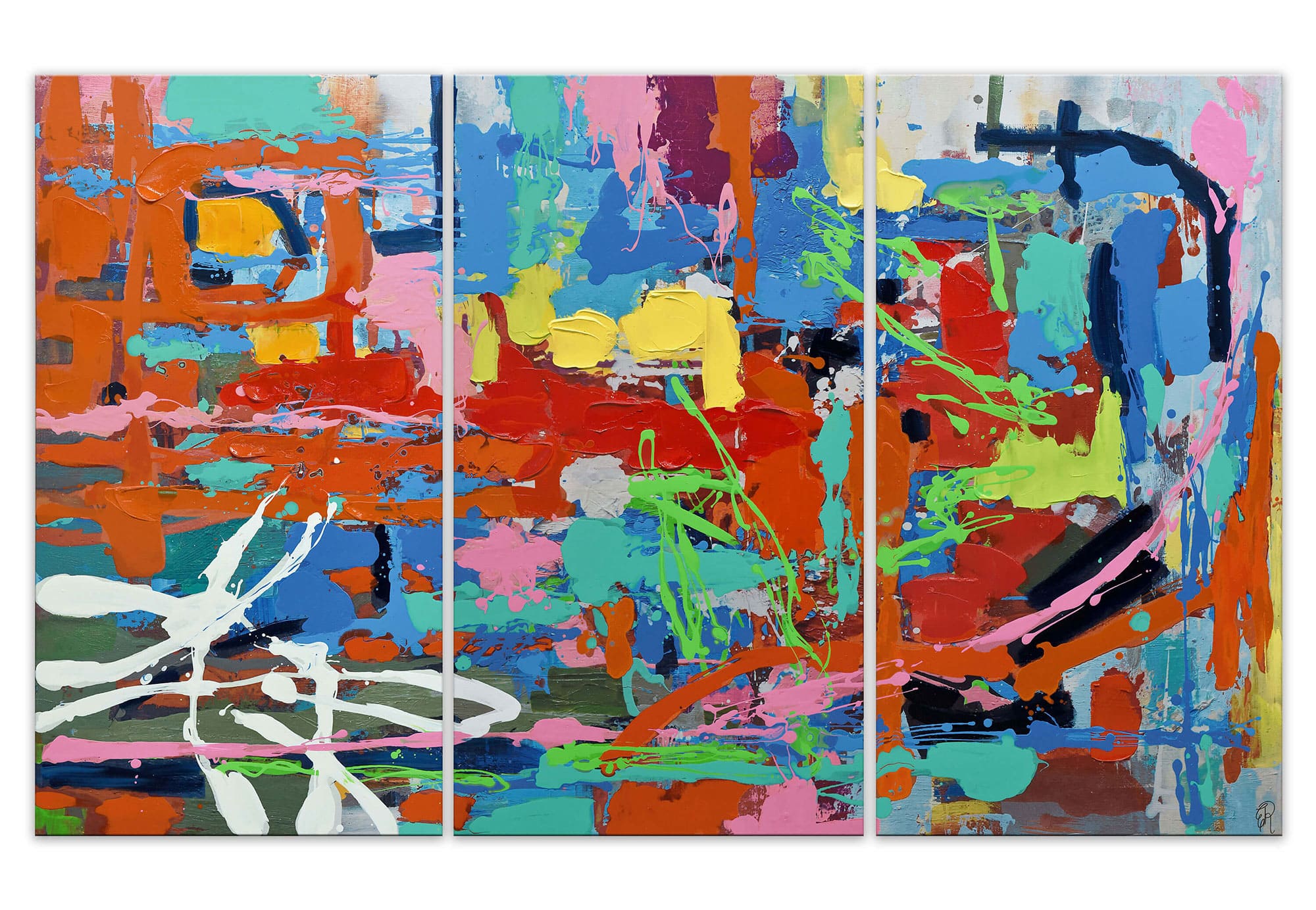 Peinture abstraite peinte à la main sur trois toiles et montée sur des cadres esthétiques. Tableau peint à la main sur toile grâce à l'utilisation de peinture acrylique qui confère à la surface des caractéristiques tridimensionnelles. Peinture texturée idéale pour les environnements contemporains et branchés ; la toile peinte couvre toute la surface de l'œuvre, y compris les côtés : le tableau est monté sur un cadre en bois et est immédiatement prêt à être fixé au mur sans l'utilisation d'un cadre. Certificat d'artisanat inclus, ce qui le rend exceptionnellement unique et égal à lui-même DIMENSIONS : 100 x 165 x 35 cm