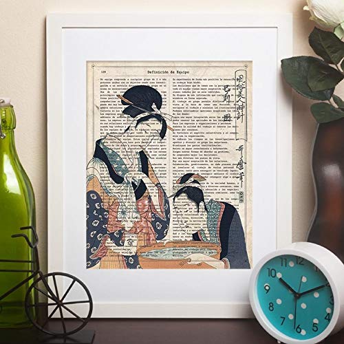 Affiche De Geisha Préparant La Salle De Bain. Feuilles De Geisha. Designs Japonais Avec Des Définitions De La Culture Japonaise. Cadre Noir A4