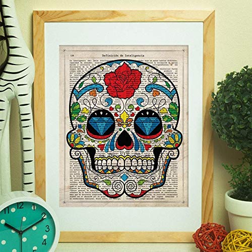 Affiche Du Crâne Mexicain Avec Fleur. Scaveras Sheets. Décoration D'intérieur. Cadre Noir A4