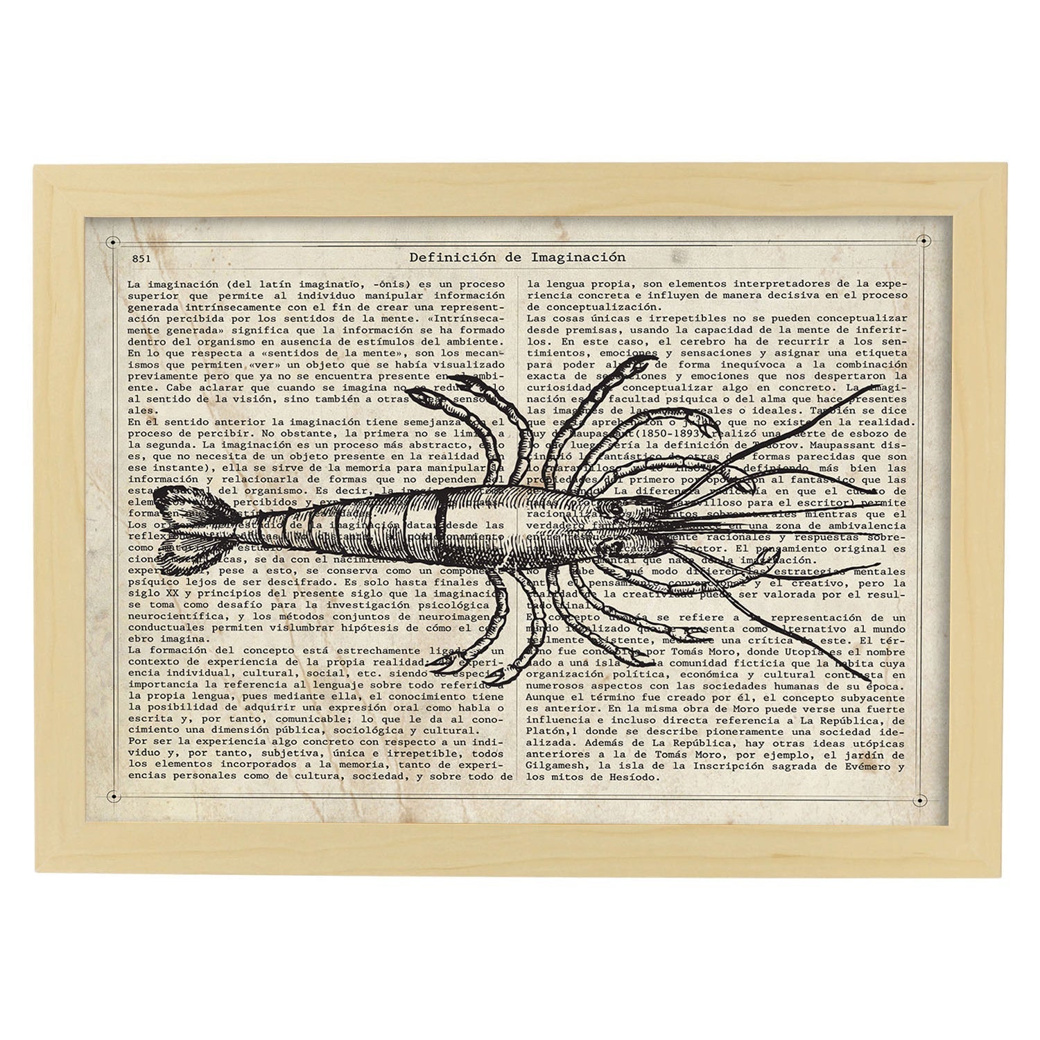 Affiches D'objets Vintage Lame De Homard Vintage Avec Des Images D'objets Vintage Avec Des Définitions En Espagnol Cadre En Bois Clair A3