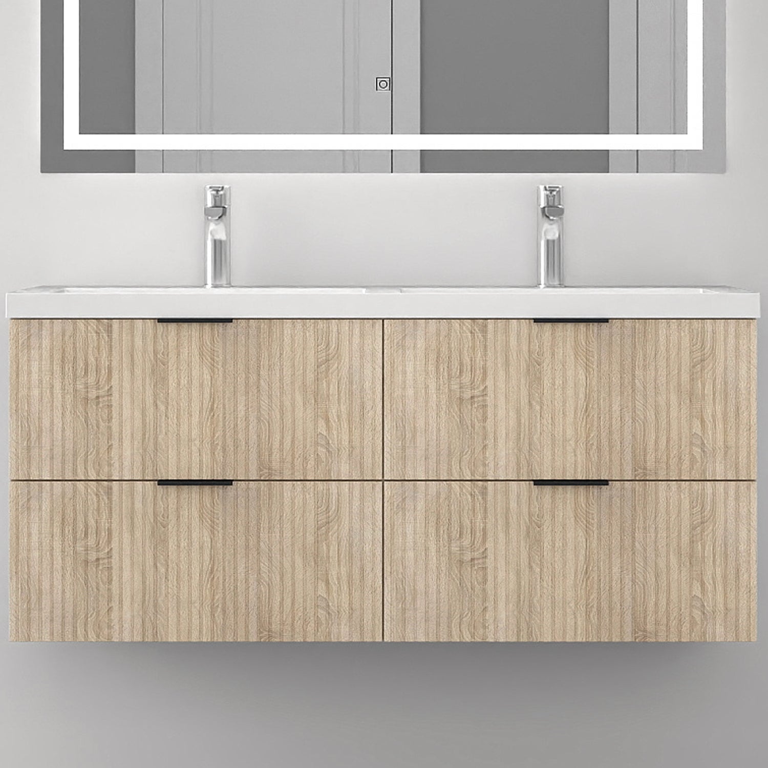 AICA Meuble de salle de bain mural Chêne 120 cm - 4 tiroirs, lavabo inclus