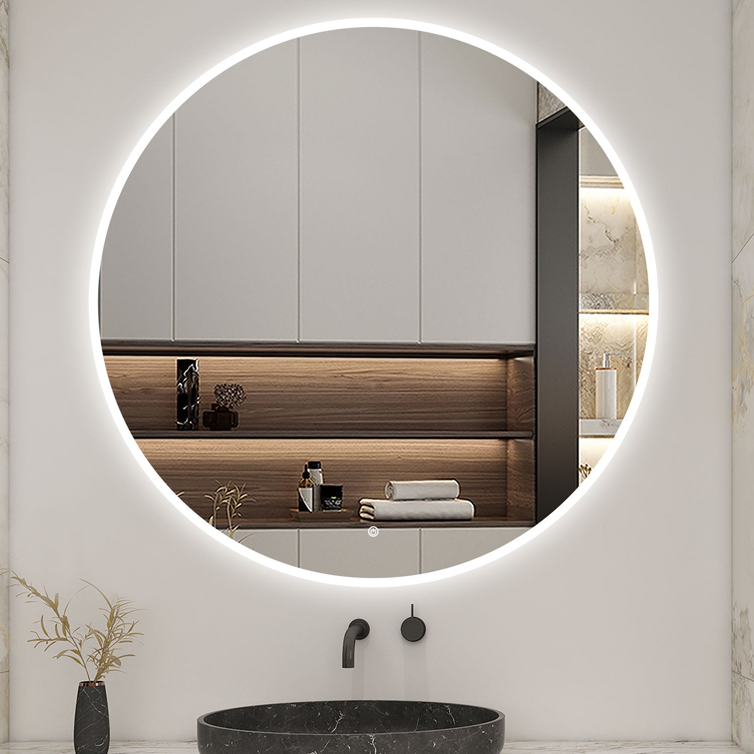 AICA Miroir lumineux rond 120cm anti-buée +dimmable + mémoire, miroir de salle de bain led