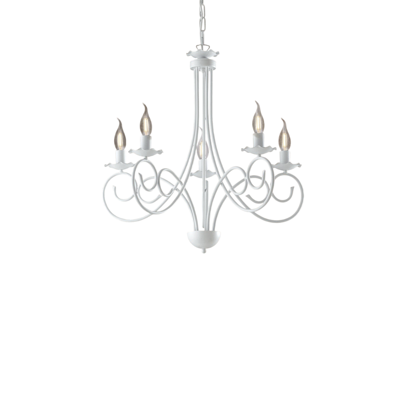Alma Lustre en fer laqué blanc décoration effet shabby chic 5 lumières 120 d.57 BL130-5-BCO