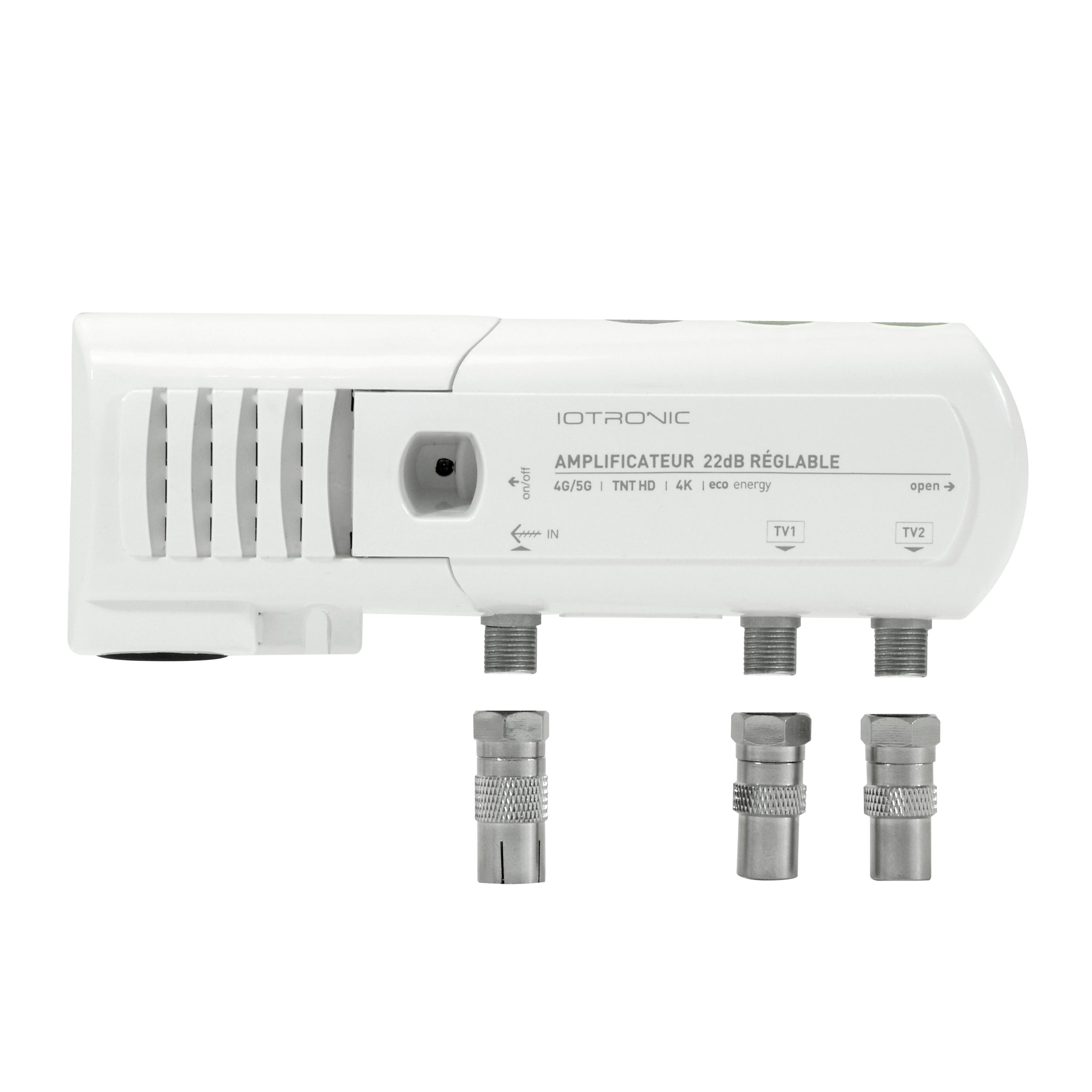 - Amplificateur de dernière génération entièrement blindé au zamak. Equipé d'un filtre LTE 700 pour éliminer toutes les interférences liées à la 4G et la 5G. Equipé d'une LED de qualité de signal qui indique le niveau de réception. Amplificateur réglage grâce à la molette incorporée. Garantie 4 ans. Compatible avec les TV HD 4K