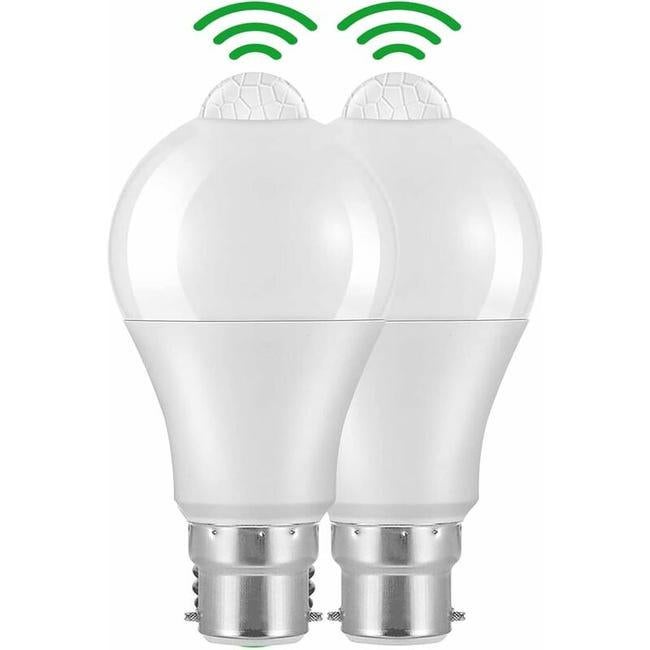 Ampoule Detecteur de Mouvement B22 Baïonnette LED, 12W, 1020lm, Blanc Froid 6000 K, CIR 85, étanches IP42 à économie d'énergie, non dimmable,2 pièces