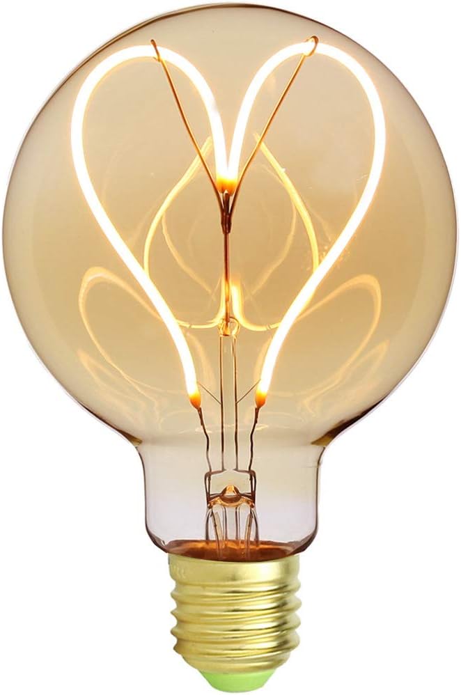 Ampoule Edison vintage classique G95 coeur Motif Filament LED doux Verre ambre 4W 220/240V Culot E27