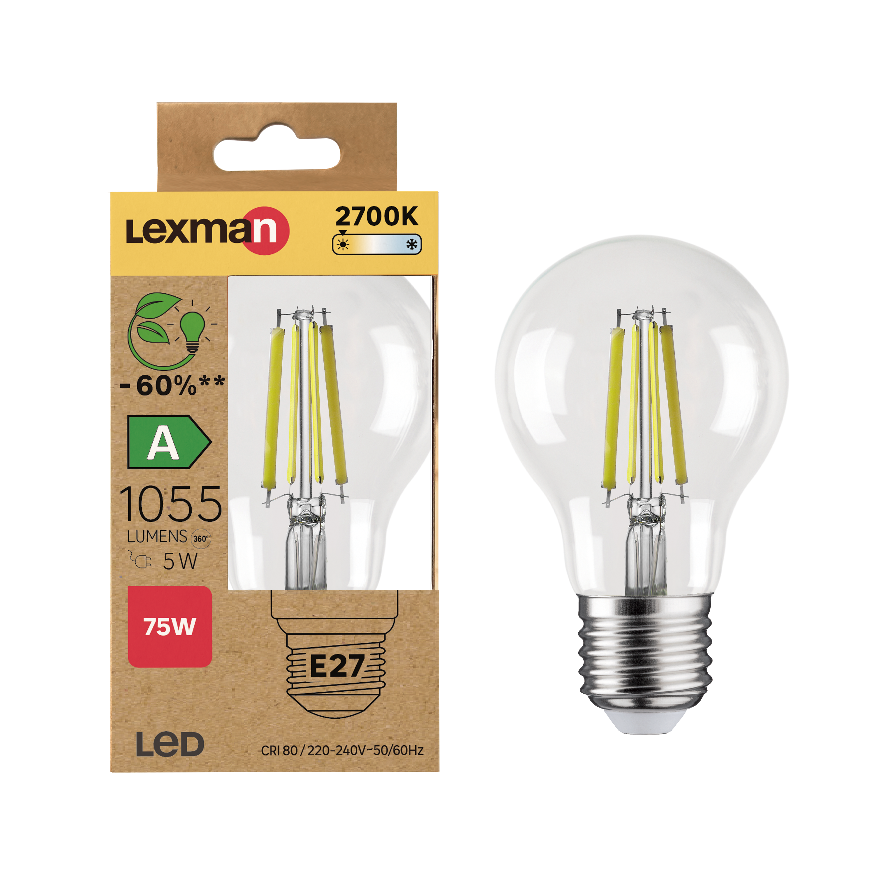 Ampoule led, E27, 1055lm, classe énergétique A, blanc chaud, LEXMAN