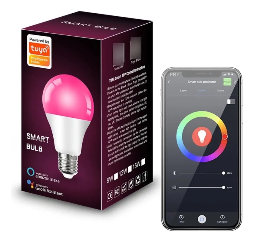 Contrôlez votre éclairage en mains libres grâce aux commandes vocales ; cette ampoule connectée Tuya est compatible avec Alexa et Google, ce qui vous permet d'allumer/éteindre, de tamiser ou de changer de couleur facilement grâce à de simples instructions vocales.