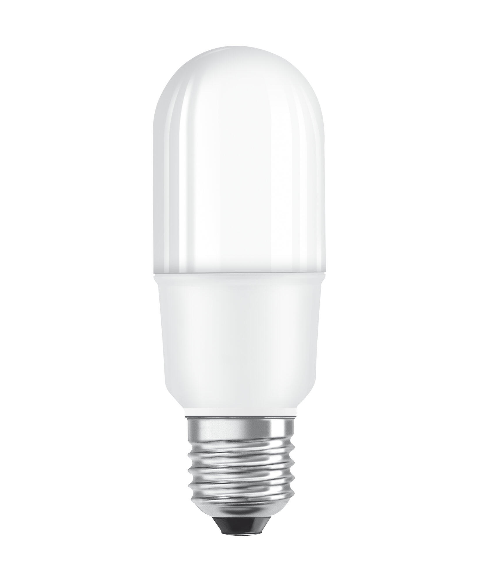 Ampoule LED OSRAM de forme stick, culot E27, consomme 9W équivalent 75W, 1000 lumens, lumière blanc chaud 2700K, finition dépoli, intensité variable, éclairage instantané, durée de vie 15000h