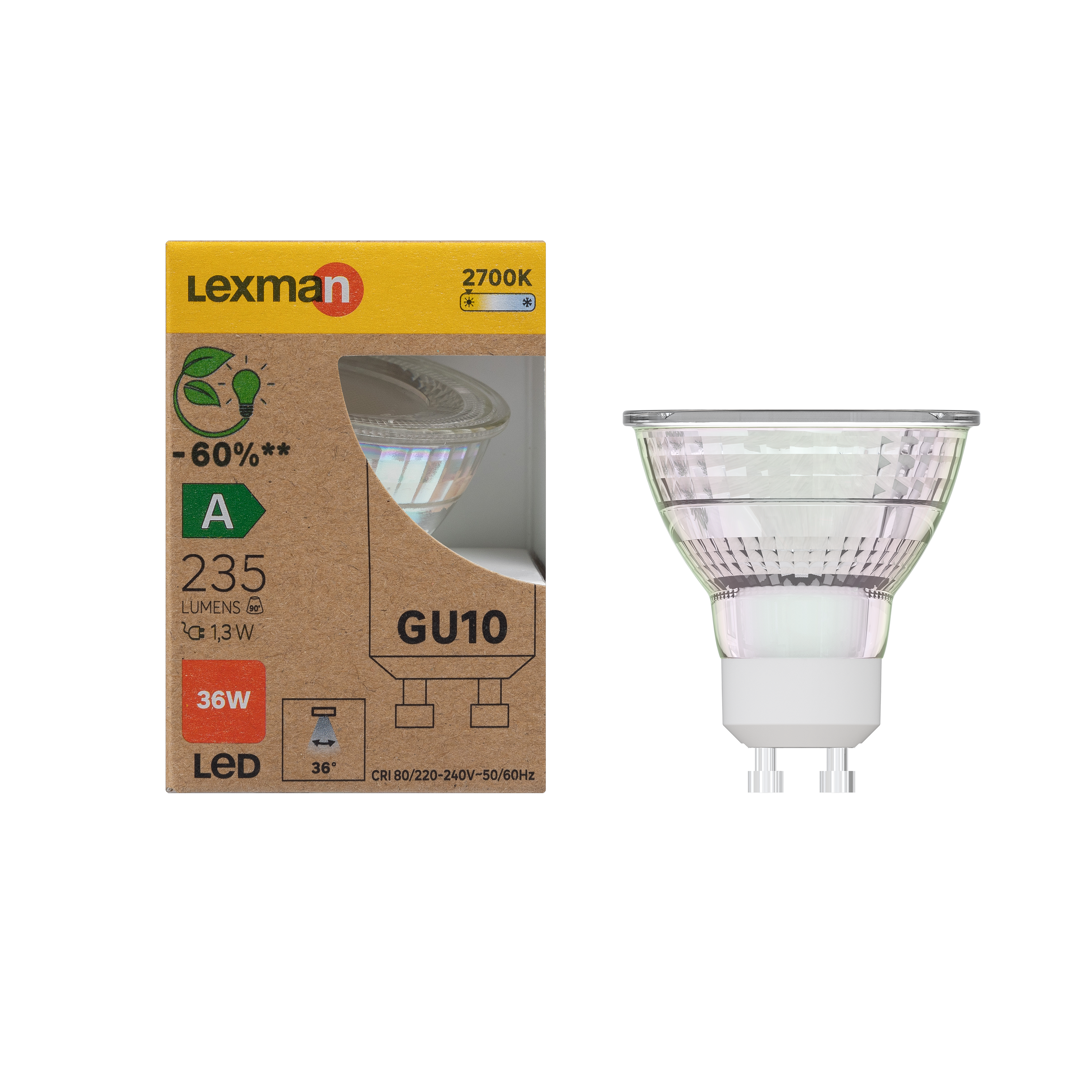 Ampoule led, réflecteur GU10, 235lm, classe énergétique A, blanc chaud, LEXMAN