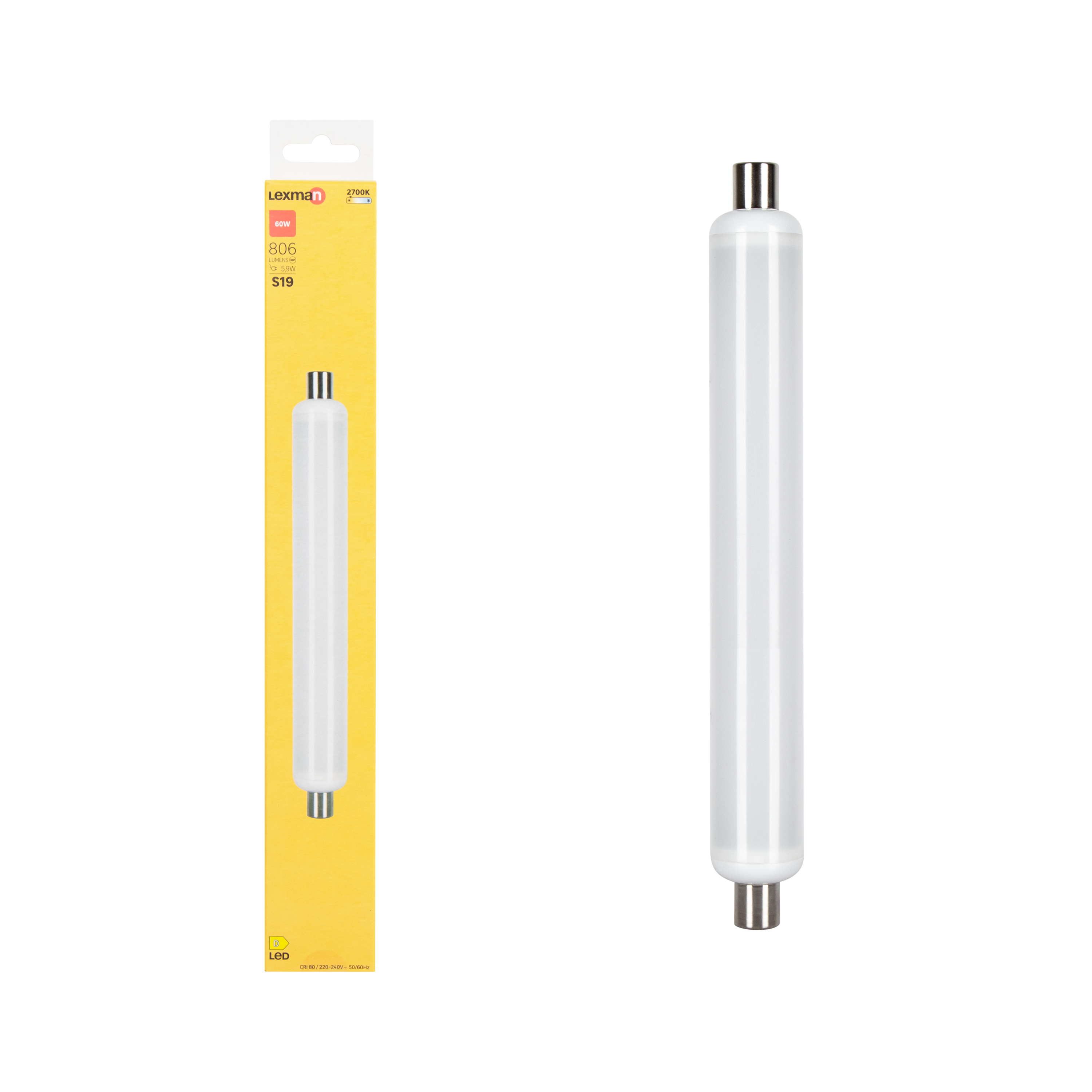 Ampoule led, tube S19, 806lm = 60W, blanc chaud, LEXMAN