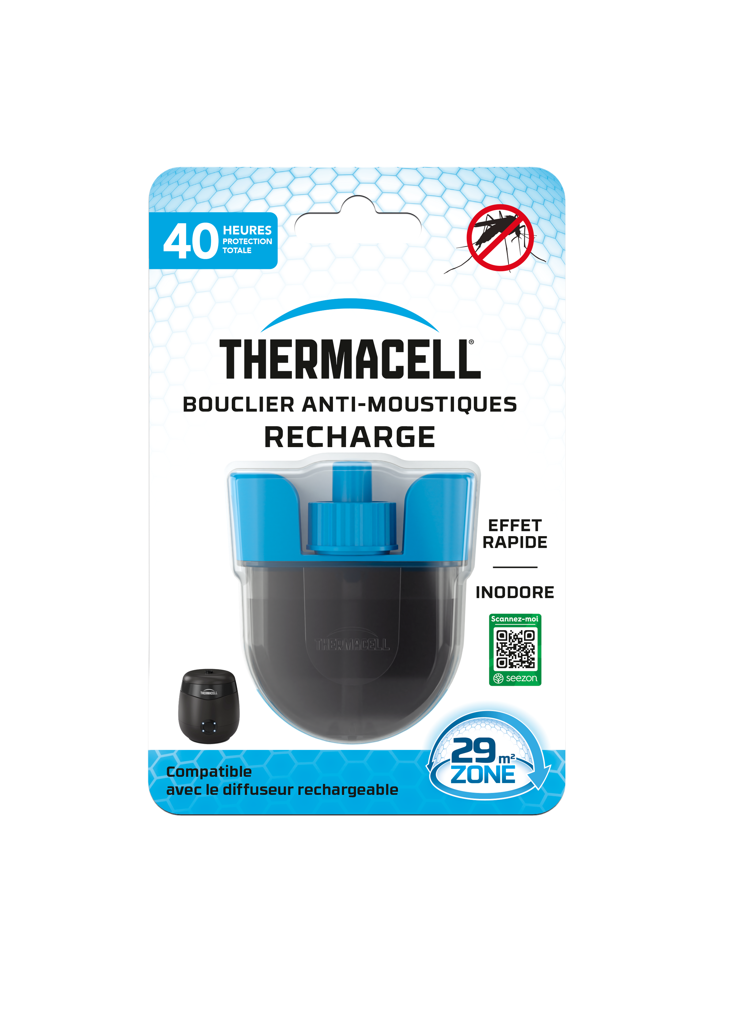 La recharge Thermacell est compatible avec l'appareil anti-moustiques sans fil et sans prise électrique : diffuseurs nomades Avec cette recharges, votre diffuseur o vous protège en extérieur dans une zone anti-moustique de 20m², à raison de 40 heures Les moustiques ne vous piquent plus : ils ne vous approchent plus !