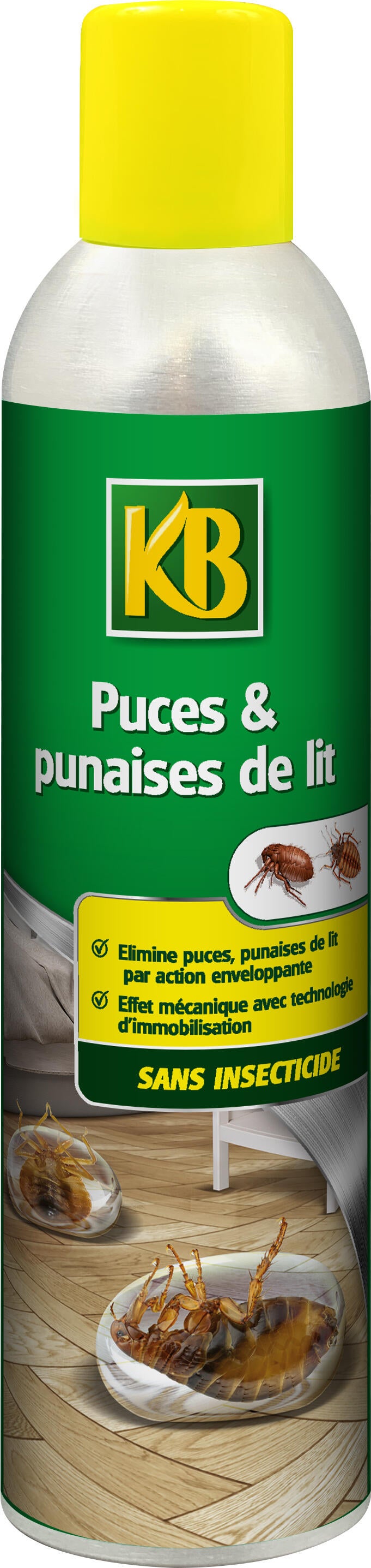 L'aérosol KB insectes élimine les puces et punaises de lit par action enveloppante.