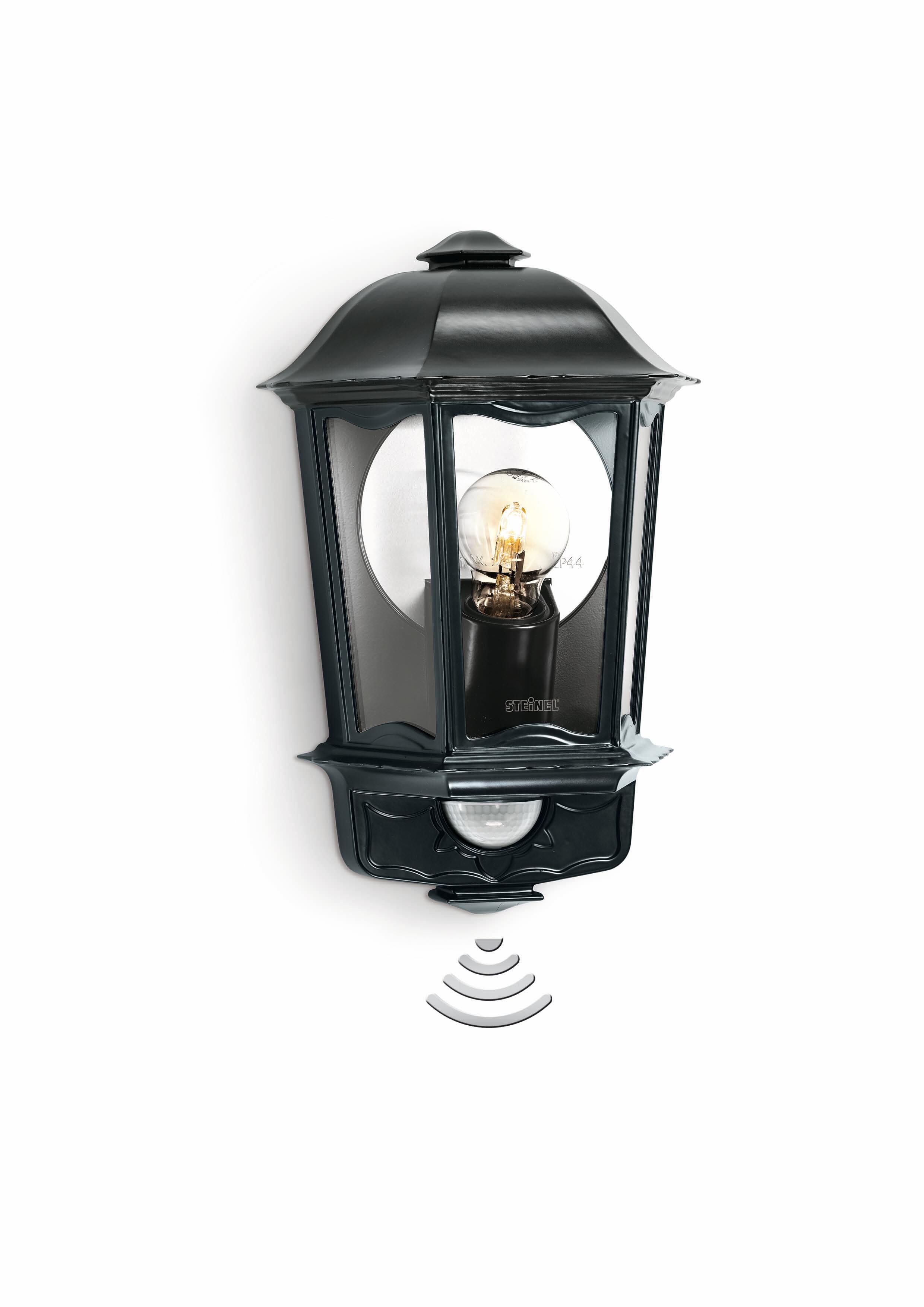 Lampe d'extérieur classique à détecteur L 190 S idéale pour l'extérieur, moulage sous pression d'aluminium de haute qualité avec ornements complexes,lumière automatique grâce au capteur infrarouge 180° avec détection jusqu'à 5/12 m en cas de mouvement, fonctions : éclairage de base réglable, démarrage en douceur agréable, 4 heures d'éclairage continu, avec douille E27 pour ampoules à incandescence de max. 100 W (non fournies)
