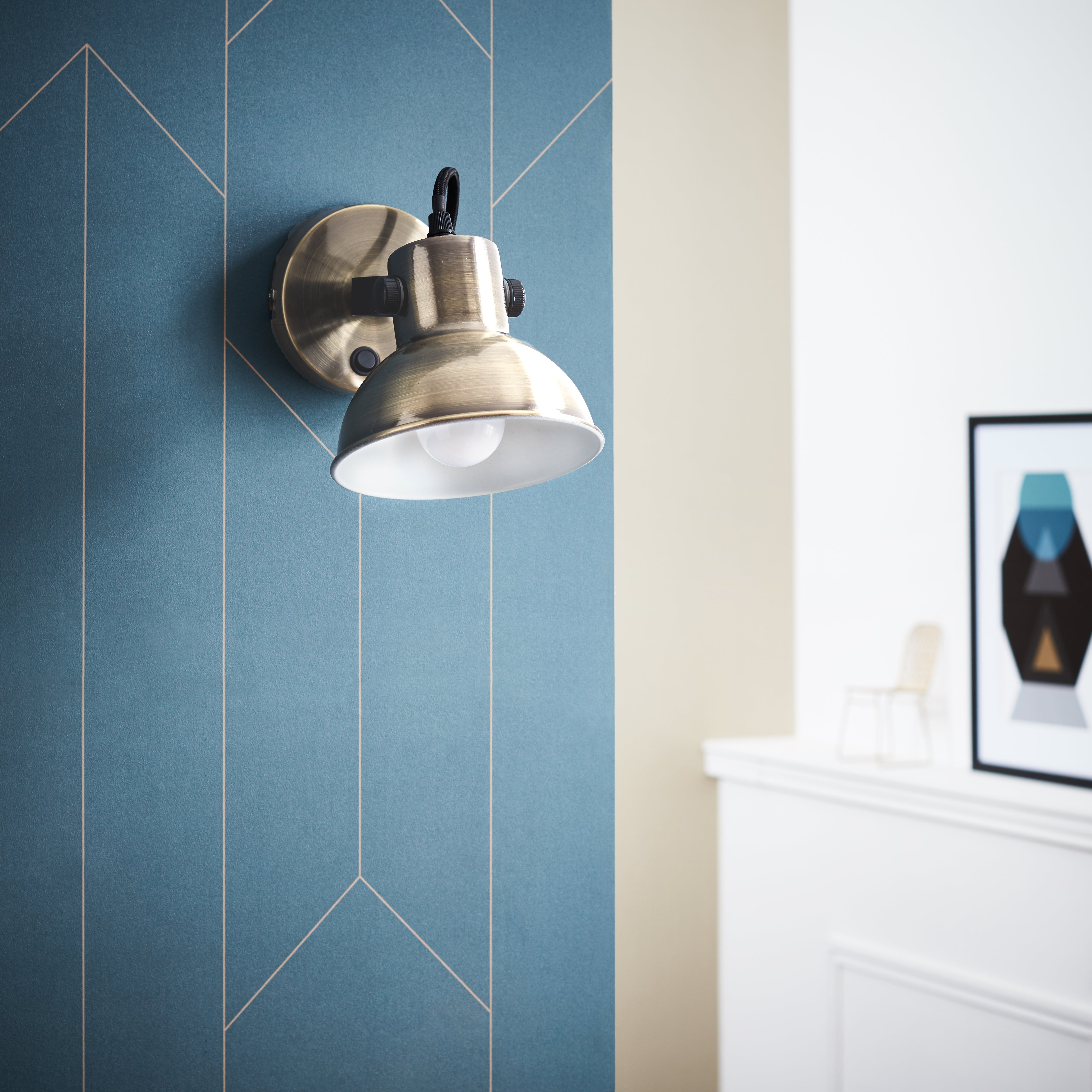 Cette applique en métal à la finition laiton brossé s'inscrira élégamment dans tous les intérieurs vintages. Le câble électrique est gainé de tissu noir pour la touche sophistiquée. L'intérieur de l'abat-jour est peint en blanc pour optimiser la lumière. La tête est articulée afin d'orienter la lumière selon vos activités. Pour le côté pratique, elle est équipée d'un interrupteur et trouvera sa place idéalement sur les côtés d'un lit ou encore au-dessus d'un bureau. Existe également en blanc pour une déco à l'influence scandinave. Ampoule E14 vendue séparément.