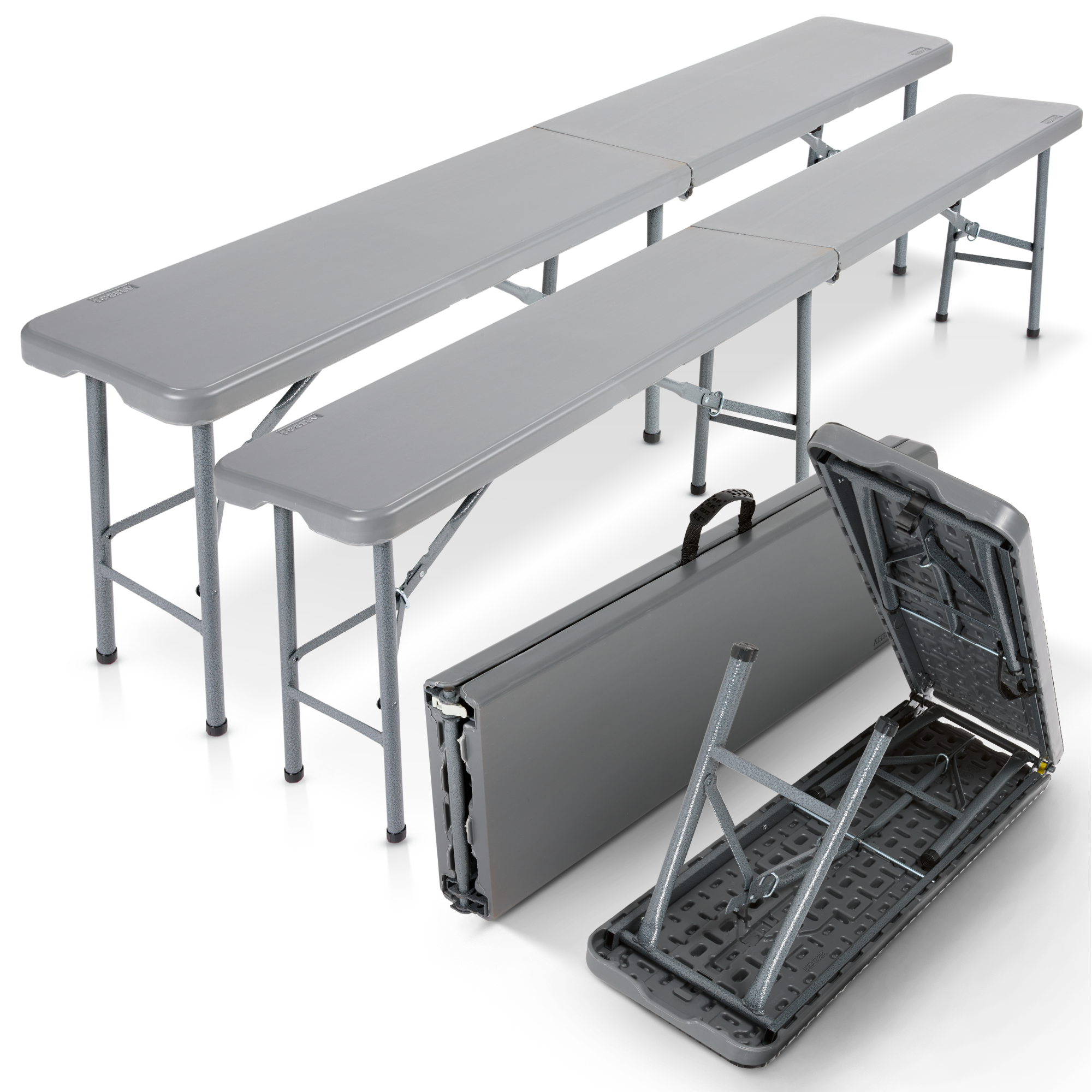 AREBOS 2 x banc à bière pliant, pliable, avec poignée de transport, 183 x 28 x 43 cm, banc pliant, camping, jardin, banc de fête anthracite