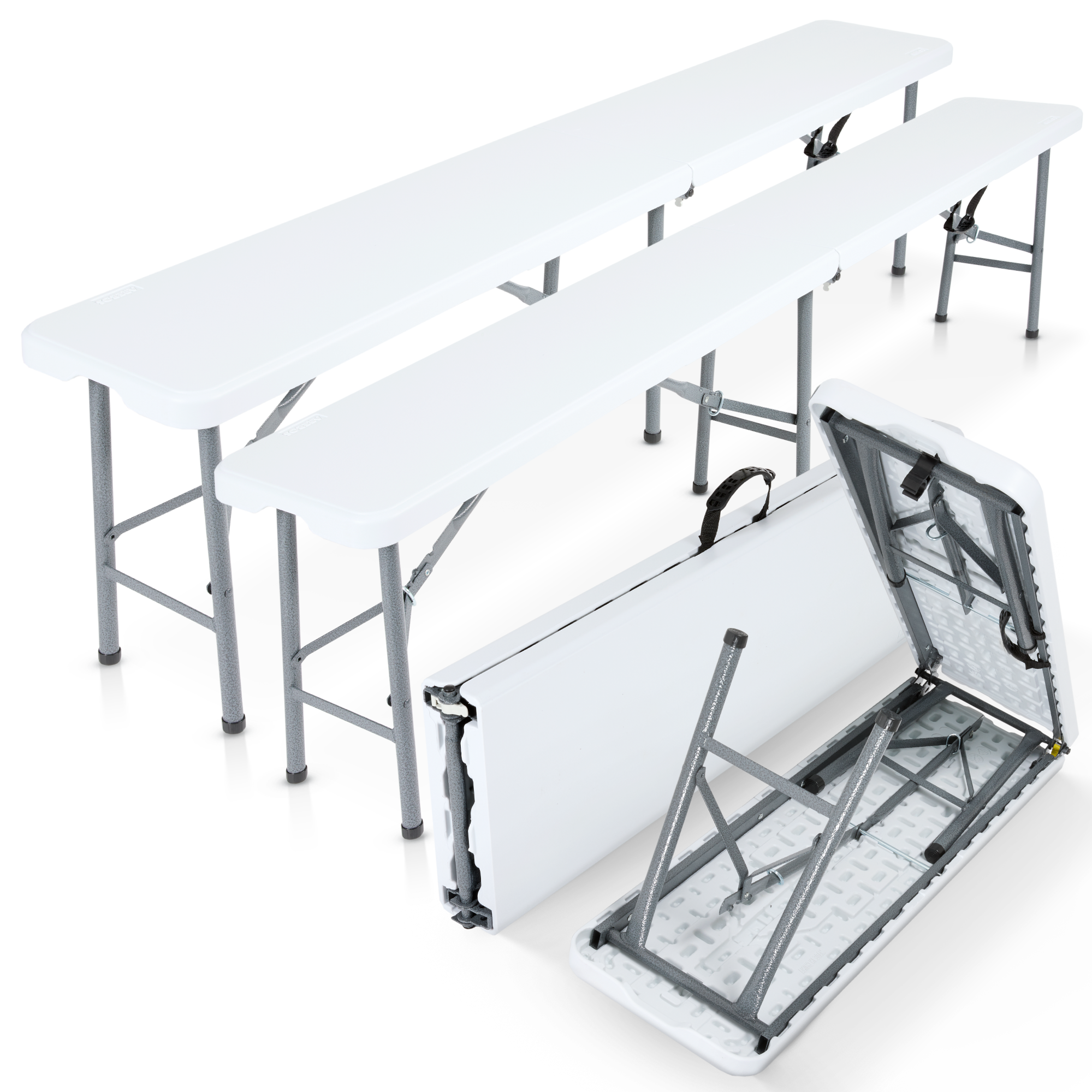 [L'ENSEMBLE PARFAIT] L'ensemble de sièges se compose de deux bancs. Ceux-ci sont pliables et peuvent être montés rapidement en cas de besoin et rangés de manière peu encombrante jusqu'à la prochaine utilisation.