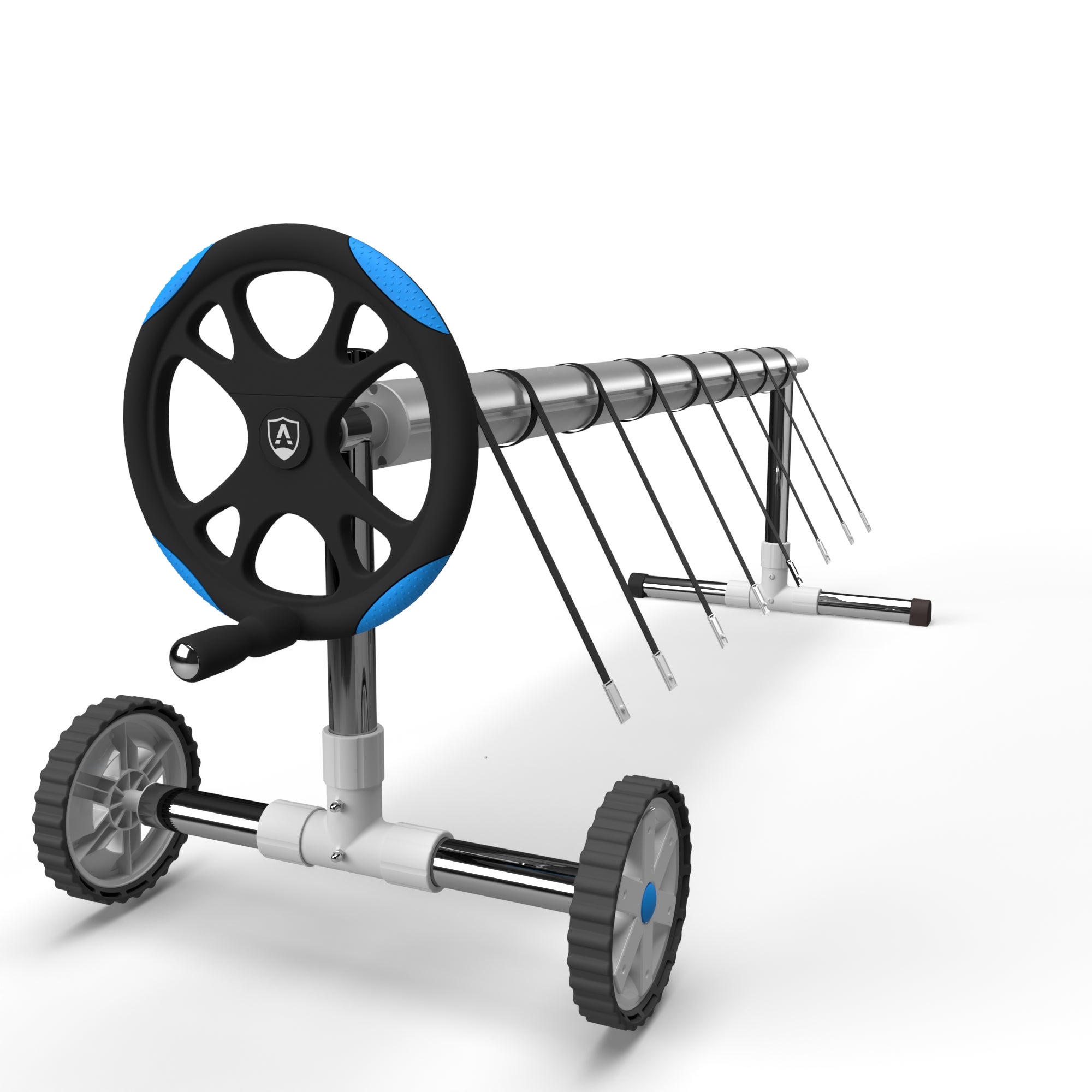 AREBOS Système d'enroulement mobile pour bâches solaires et bâches de piscine longueur de 3m - 5,70m Fixation et Rouleaux Inclus