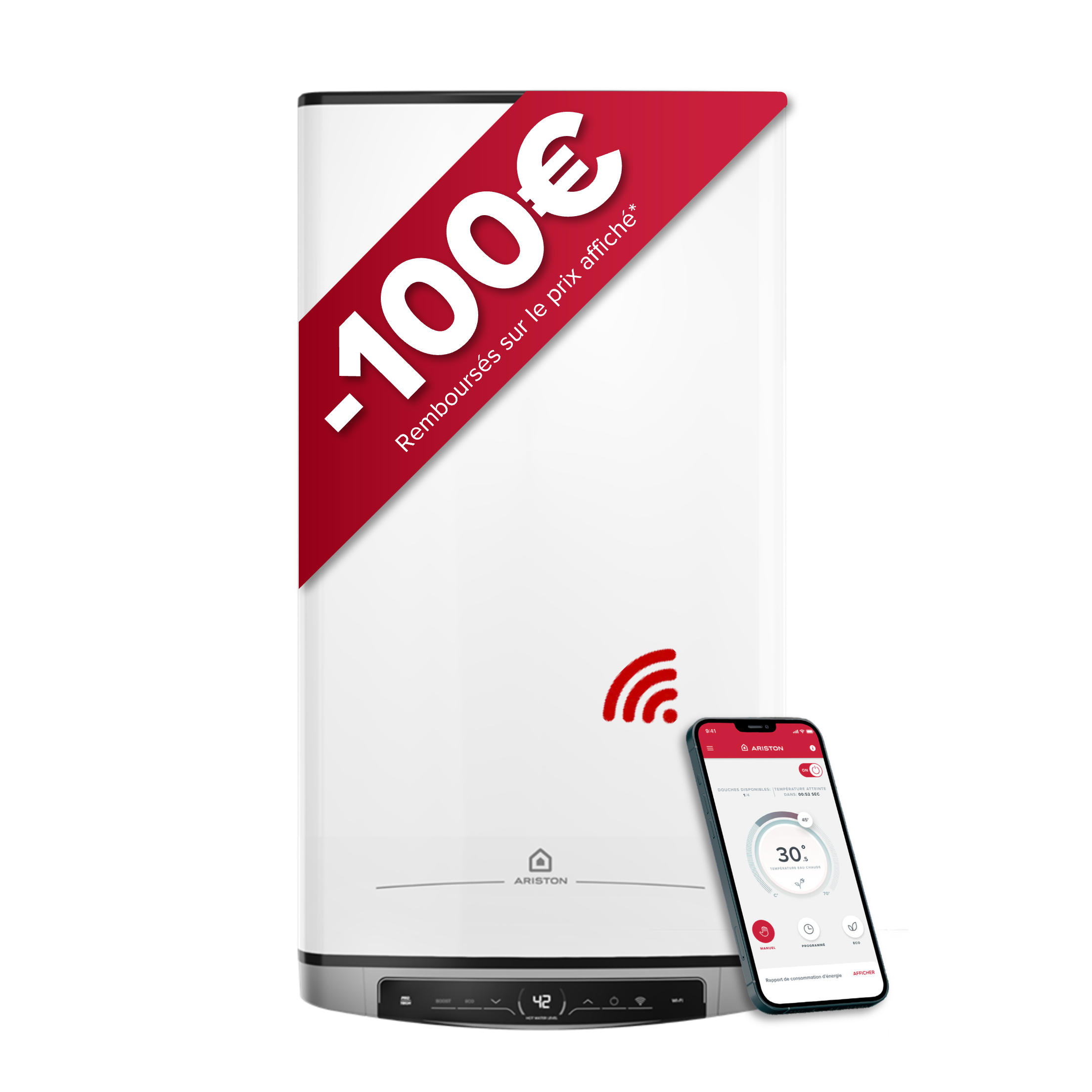 Avec sa capacité de 65L, il fournit jusqu’à 159 litres d’eau chaude à 40°C. Son écran tactile intuitif permet de régler facilement la température et la programmation quotidienne. Il est équipé d’un mode hors-gel automatique et d’une fonction de désinfection thermique pour une sécurité optimale. Ses résistances DRY®, brevetées par Ariston sont adaptées aux eaux peu calcaires, assurent une chauffe rapide, tandis que les anodes Magnésium + Titane prolongent considérablement la durée de vie de la cuve.