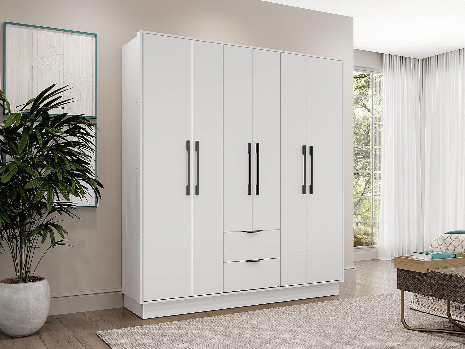 Armoire 6 portes et 2 tiroirs - L162 cm - Blanc - FEOVA
