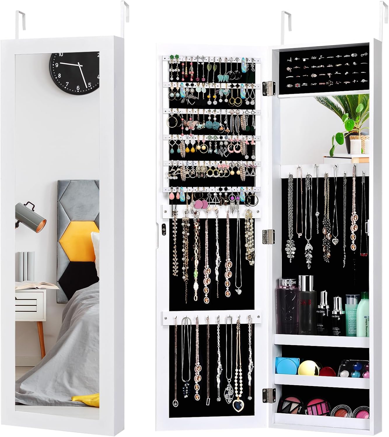 - Armoire à Bijoux 2 en 1 : Ce n'est pas seulement une armoire à bijoux, mais également un miroir sur toute la longueur pour répondre à vos différents besoins. Elle comporte 2 miroirs, le miroir pleine longueur vous permet de vérifier la tenue et le match, et le miroir de courtoisie intégré facilite le maquillage et le port de bijoux.