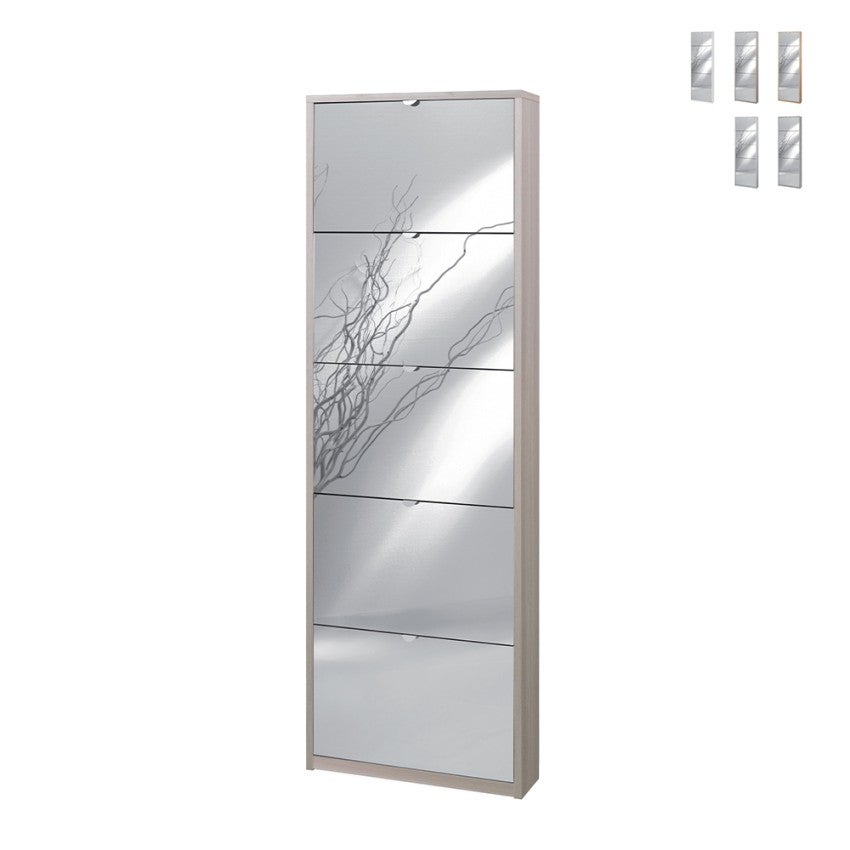 Armoire à chaussures 5 portes avec miroir design moderne 12 paires de chaussures Darcy