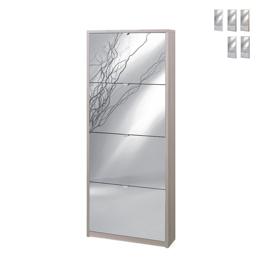 Armoire à chaussures moderne 4 portes avec miroir 10 paires de chaussures Glenn