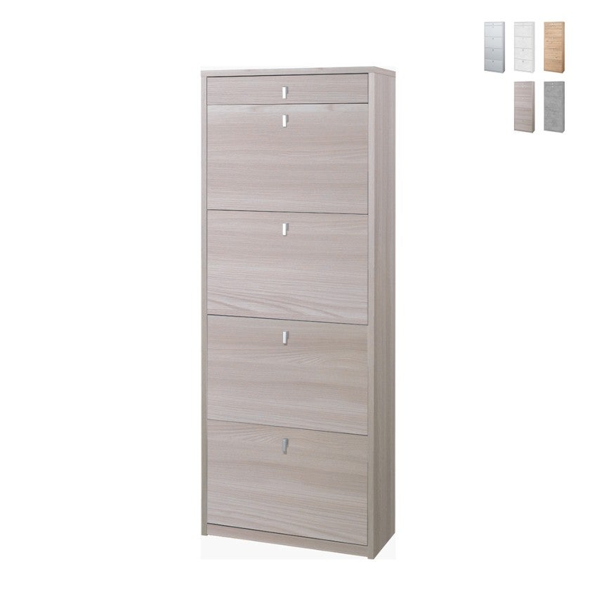Simple dans le design mais décidément fonctionnel, avec le meuble à chaussures Cadre de Sarmog, vous pouvez enfin dire adieu aux chaussures éparpillées dans la maison et optimiser au mieux l'espace. Les petites dimensions vous permettent en effet de tirer profit de même des coins inutilisés pour pouvoir le placer, par exemple, derrière la porte d'entrée, dans le corridor, sous les escaliers, dans un placard ou là où vous préférez. Malgré les petites dimensions, le meuble pour chaussures offre 4 compartiments pratiques qui peuvent accueillir jusqu'à 20 paires de chaussures grâce à la double profondeur des portes et un tiroir glissant pratique où ranger les brosses, le matériel pour nettoyer les chaussures ou tout autre accessoire pour la maison que vous souhaitez conserver. La structure est entièrement fabriquée en Italie avec des matériaux de haute qualité sélectionnés pour garantir une longue durée dans le temps et une grande résistance aux chocs, aux rayures, à l’utilisation quotidienne et en même temps rend le meuble facile à nettoyer.