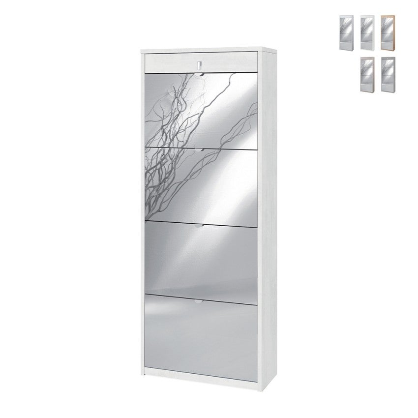 Simple dans le design mais étonnamment élégant et fonctionnel grâce aux portes miroir, avec le porte-chaussures Glimt de Sarmog, vous pourrez enfin dire adieu aux chaussures dispersées dans la maison et optimiser au mieux l'espace. Les dimensions vous permettent en effet d'utiliser même les coins les plus cachés pour les placer par exemple derrière la porte d'entrée, dans le couloir, sous l'escalier, dans un placard ou où vous préférez. Malgré les petites dimensions, l'armoire à chaussures offre 4 espaces pratiques qui accueillent jusqu'à 20 paires de chaussures grâce à la double profondeur des portes et tiroir coulissant pratique pour ranger les brosses, le matériel de nettoyage des chaussures ou tout autre accessoire de maison que vous souhaitez conserver. La structure est entièrement fabriquée en Italie avec des matériaux de haute qualité sélectionnés pour garantir une longue durée dans le temps et une grande résistance aux chocs, rayures, utilisation quotidienne et simultanément rendent le porte-chaussures facile à nettoyer.