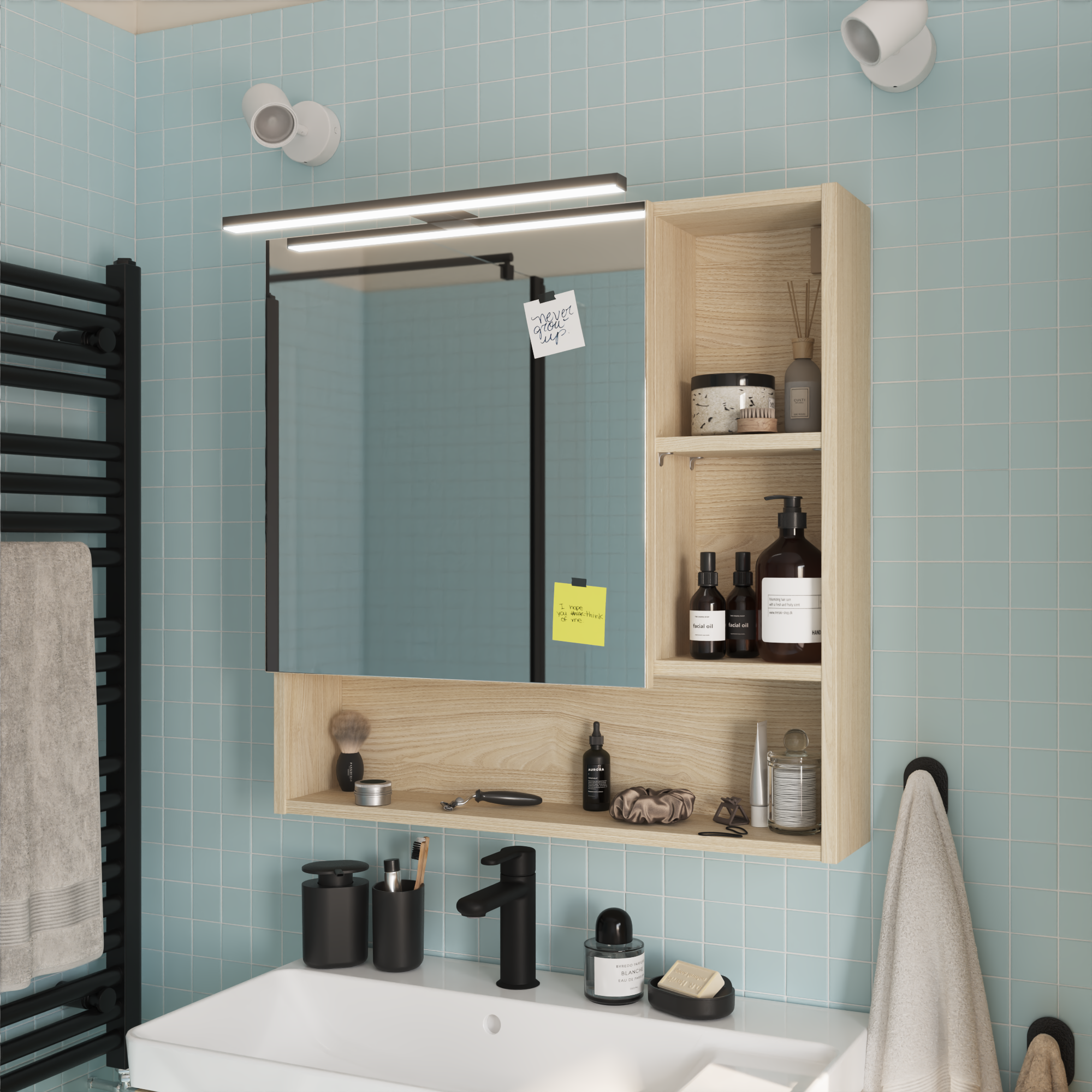Découvrez l'armoire de toilette EASY SENSEA, une solution astucieuse pour optimiser l'espace de votre salle de bain. Cette armoire est vendue en kit . Elle combine un design moderne et intemporel avecsa finition blanc mat ou effet chêne naturel. Elle offre un rangement optimisé grâce à sa porte à fermeture douce (soft-close) et ses deux étagères internes, idéales pour organiser vos produits. Créez votre propre espace de rangement grâce à ses étagères réglables en hauteur et ses espaces ouverts pour la décoration ou un accès facile. L'armoire de toilette est équipée d'un espace électrique à l'arrière pour vous donner la possibilité d'ajouter un éclairage supérieur supplémentaire. Elle bénéficie d'une garantie de 5 ans (avec pièces détachées disponibles).L'armoire de toilette EASY SENSEA est la solution idéale pour une salle de bain organisée et élégante. L'armoire de toilette existe en 2 dimensions : 50 et 70 cm et en 2 finitions : blanc mat ou effet chêne naturel. Fixez-la au mur avec des vis et des chevilles adaptées à votre type de mur. Besoin de plus de rangement ? Pensez à ajouter la colonne ou le meuble sous-vasque EASY pour un ensemble parfaitement coordonné. La gamme SENSEA Easy est le choix idéal pour un projet de salle de bain moderne et pratique.