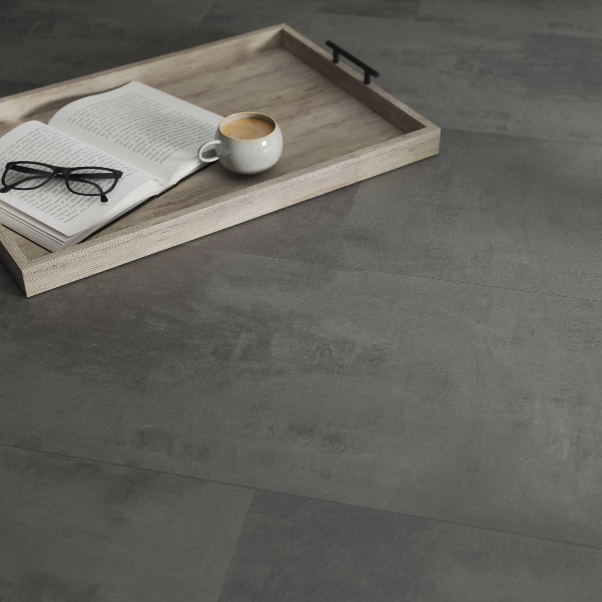 ARTENS - Échantillon de dalle PVC - 28 x 15 cm - Sol PVC à clipser SEREN avec sous-couche intégrée - INTENSO EXTREM - Effet pierre - Gris foncé -