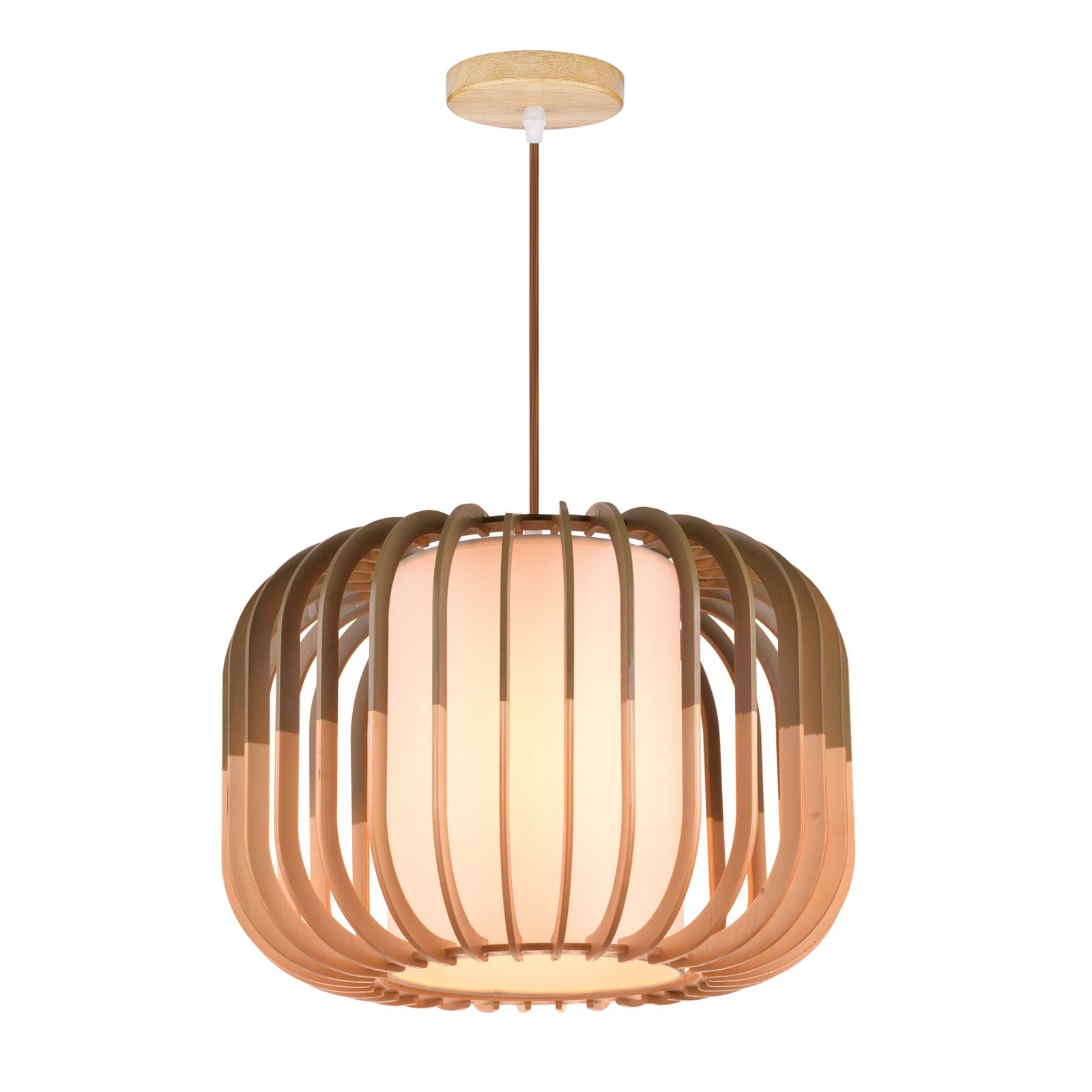Fabriqué avec soin par des artisans aux techniques de tissage exquises. L'abat-jour est entouré de bandes de bois, formant une élégante silhouette circulaire. La lumière est douce et diffuse une ambiance chaleureuse à travers les lamelles de bois. Cette lampe peut être utilisée dans les salons, les salles à manger et d'autres espaces pour ajouter une texture naturelle et un sentiment de chaleur. Le matériau en bois complète le décor intérieur et présente un effet esthétique unique.