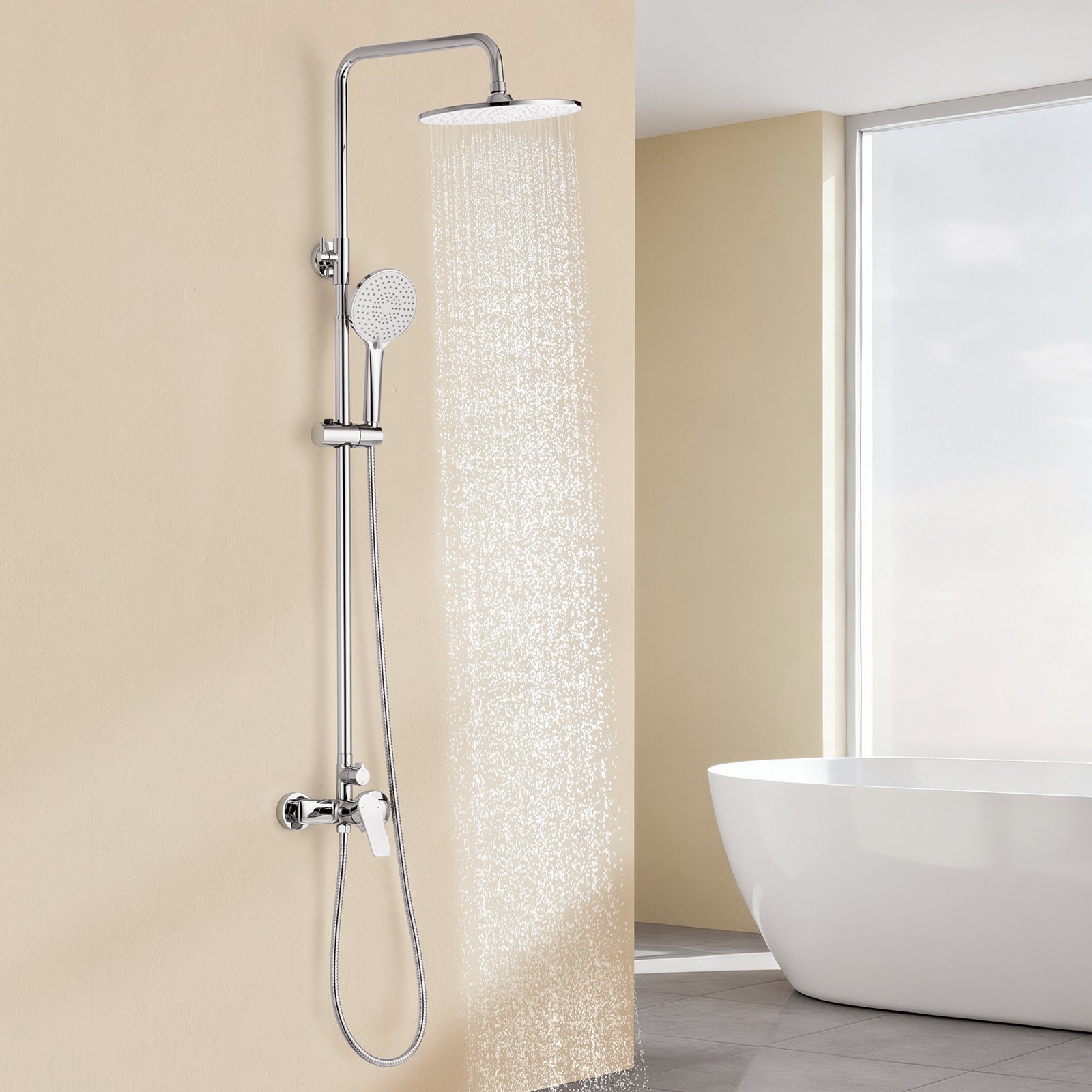 Auralum max Système Douche,avec Mitigeur Laiton,Colonne Douche Hauteur Réglable,Tête Douche Ronde 25 cm,Douchette 3 Jets,Acier Inoxydable,Chromé