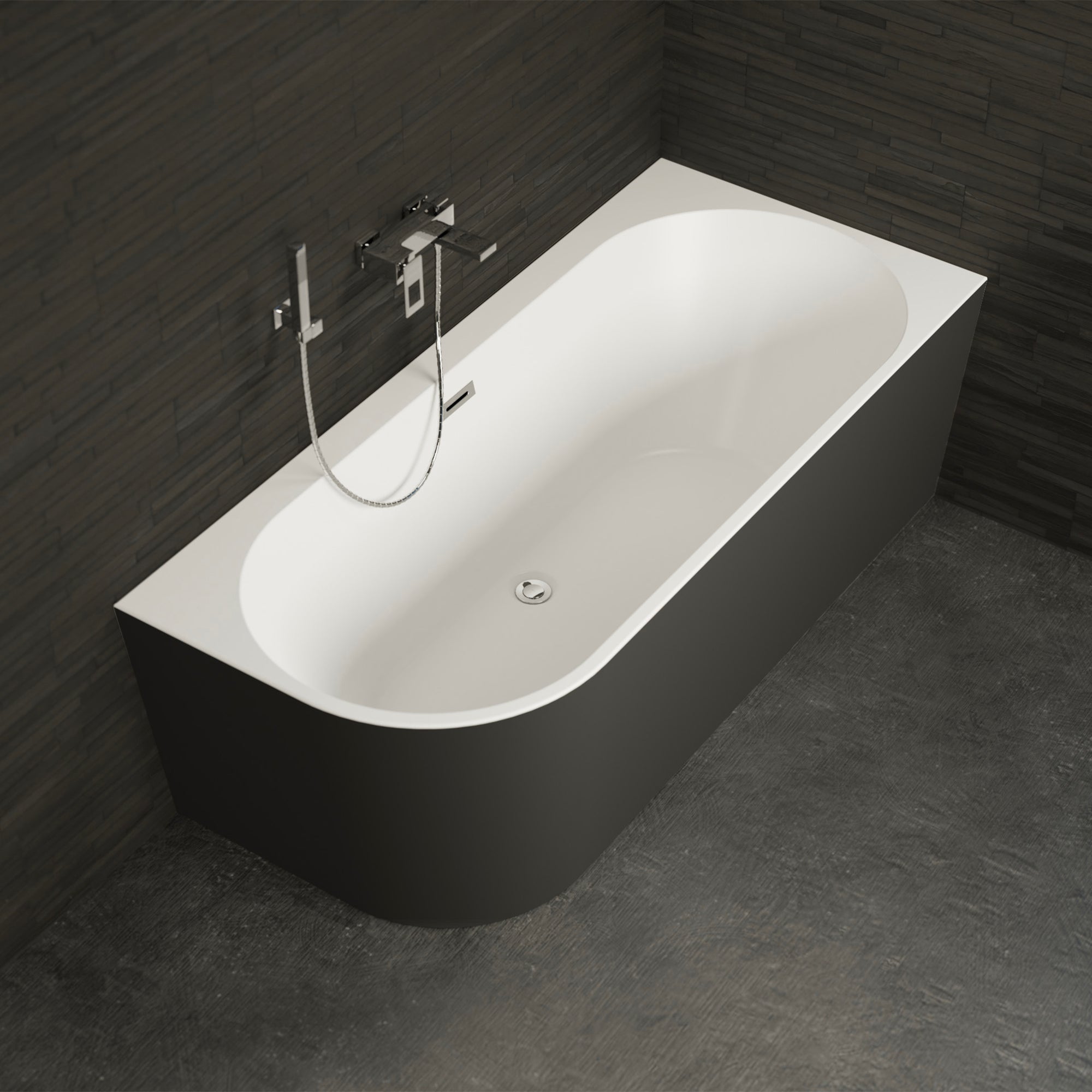 Baignoire semi-îlot murale d'angle Capri 170 droite noire mate
