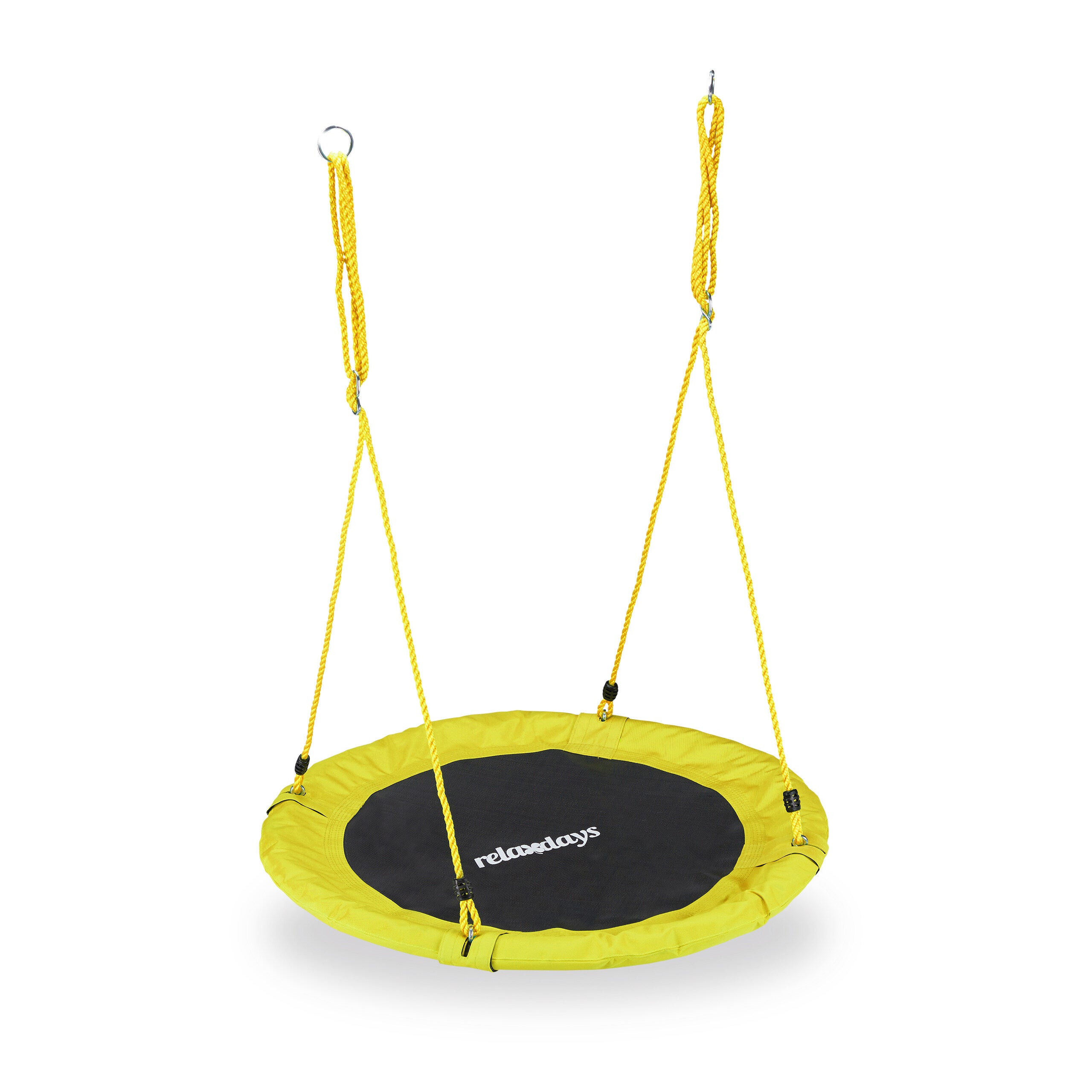 Balançoire nid d'oiseau rond 110 cm à suspendre enfant adulte jardin extérieur Ø 110 cm, 100 kg, jaune, Relaxdays