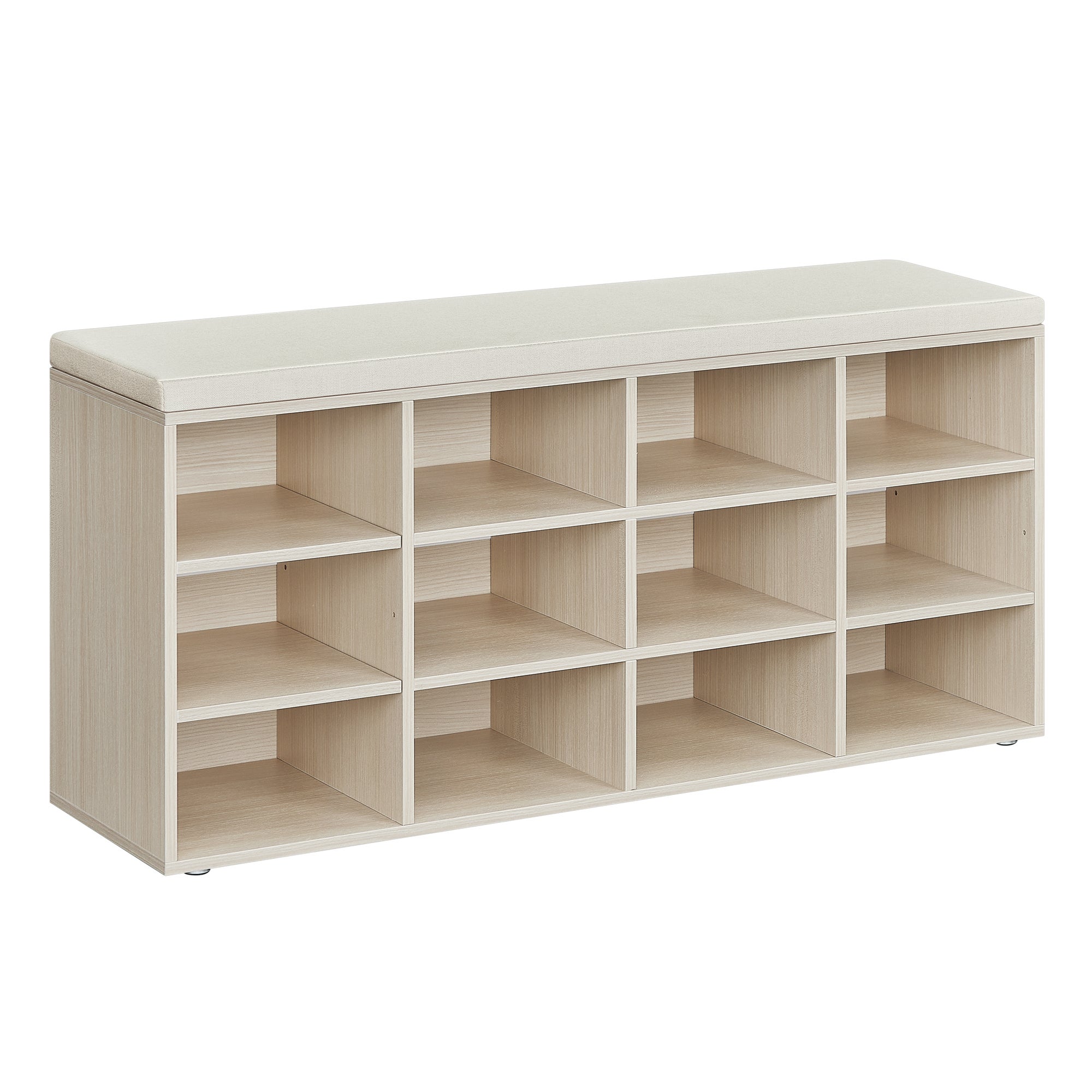 Banc à Chaussures, Assise Rembourrée et 12 Compartiments, Étagère Porte-chaussures, Capacité de Charge 136 kg, Beige Naturel