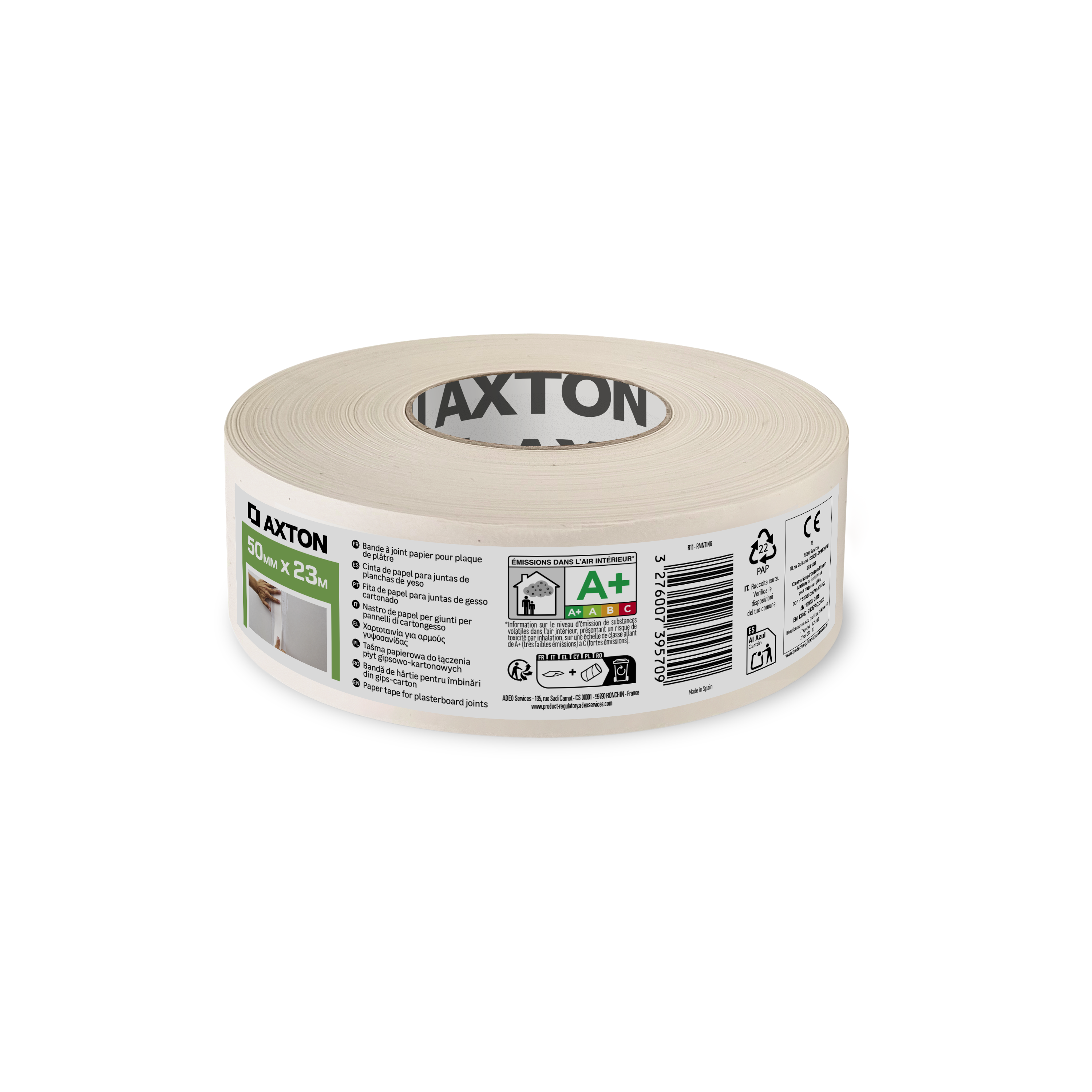 Bande à joint papier AXTON, pour jointer deux plaques de plâtre entre elles en association avec un enduit adapté. pose classique et rapide. Invisible après finition. Forte résistance