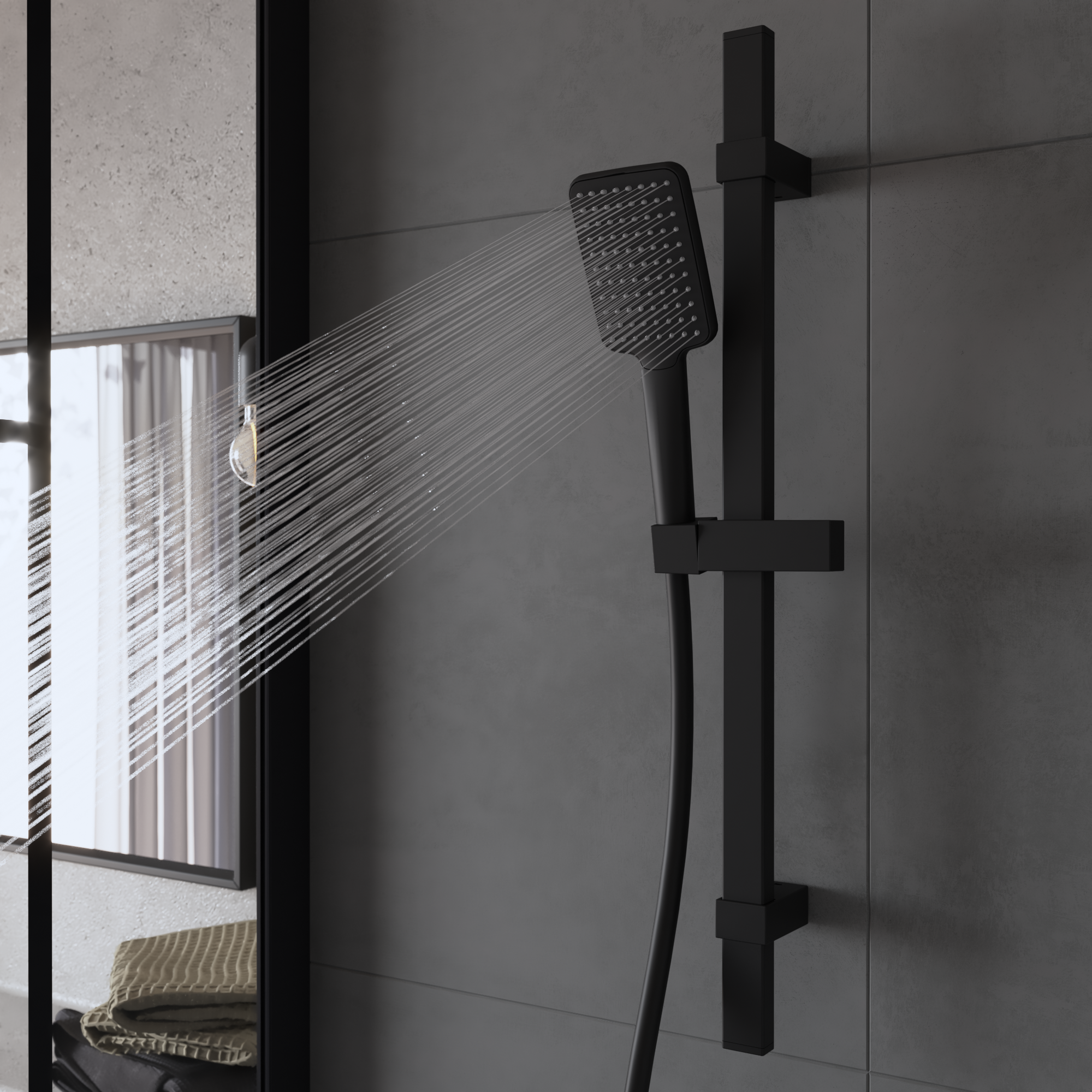 Barre de douche en acier inoxydable noir mat STUDIO, Sensea. La barre de douche possède des entraxes ajustables qui permettent d'utiliser les trous existants. Existe en 2 finitions : chrome et noir mat. Le design de ce produit a été développé en France par les équipes Sensea. Ce produit est garanti 10 ans.