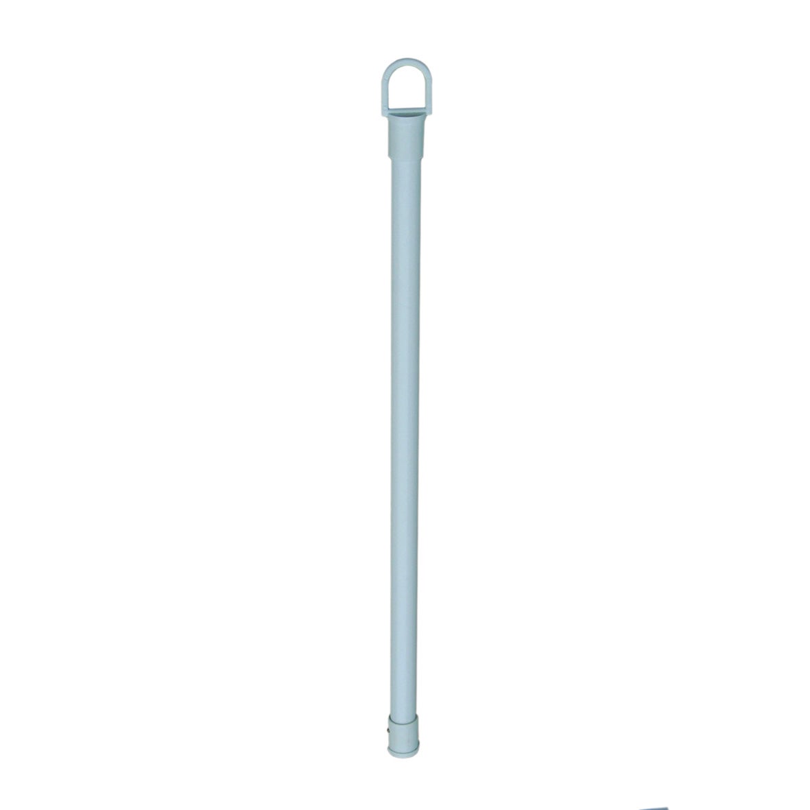 Support métallique Sensea blanc. Une partie du support est vissée au plafond et l'autre comporte un crochet où l'on peut fixer la tringle pour accrocher le rideau de douche. Il garantit un maintien optimal et peut être découpé pour s'adapter à tous les plafonds. Tringle et rideau non inclus. Dimensions : 2 x 50 cm (diamètre x longueur).
